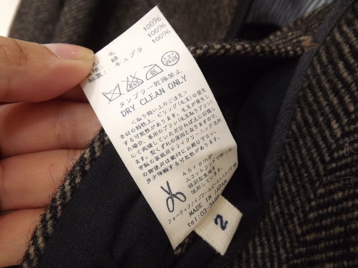 45RPM 45R(フォーティファイブ・アール)ノーカラー ツイード ウール コート 日本製  サイズ2