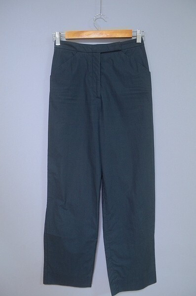 A3054/美品 春夏 薄手 軽量 GIORGIO ARMANI アルマーニ 黒ラベル ナイロン ストレート スラックス パンツ W66 濃紺/イタリア製 レディース