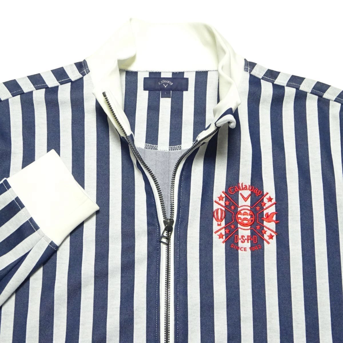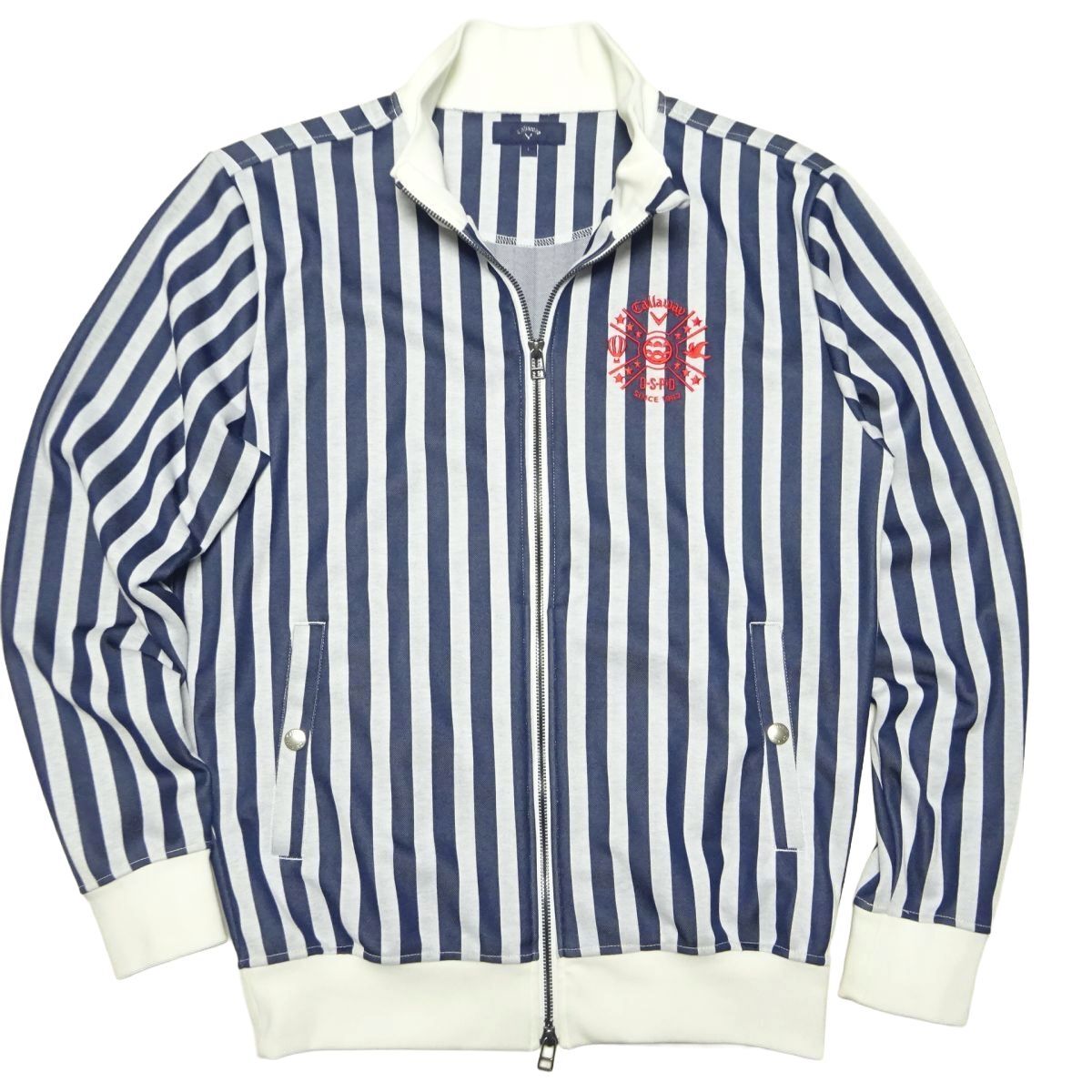 ★キャロウェイ★ストライプ柄トラックジャケットL/紺白ジャージCallawayメンズゴルフウェアシャツジャンパーブルゾンネイビー