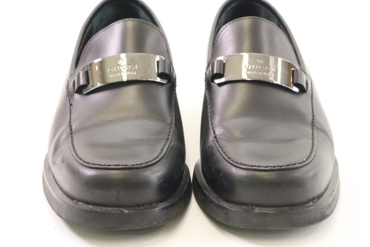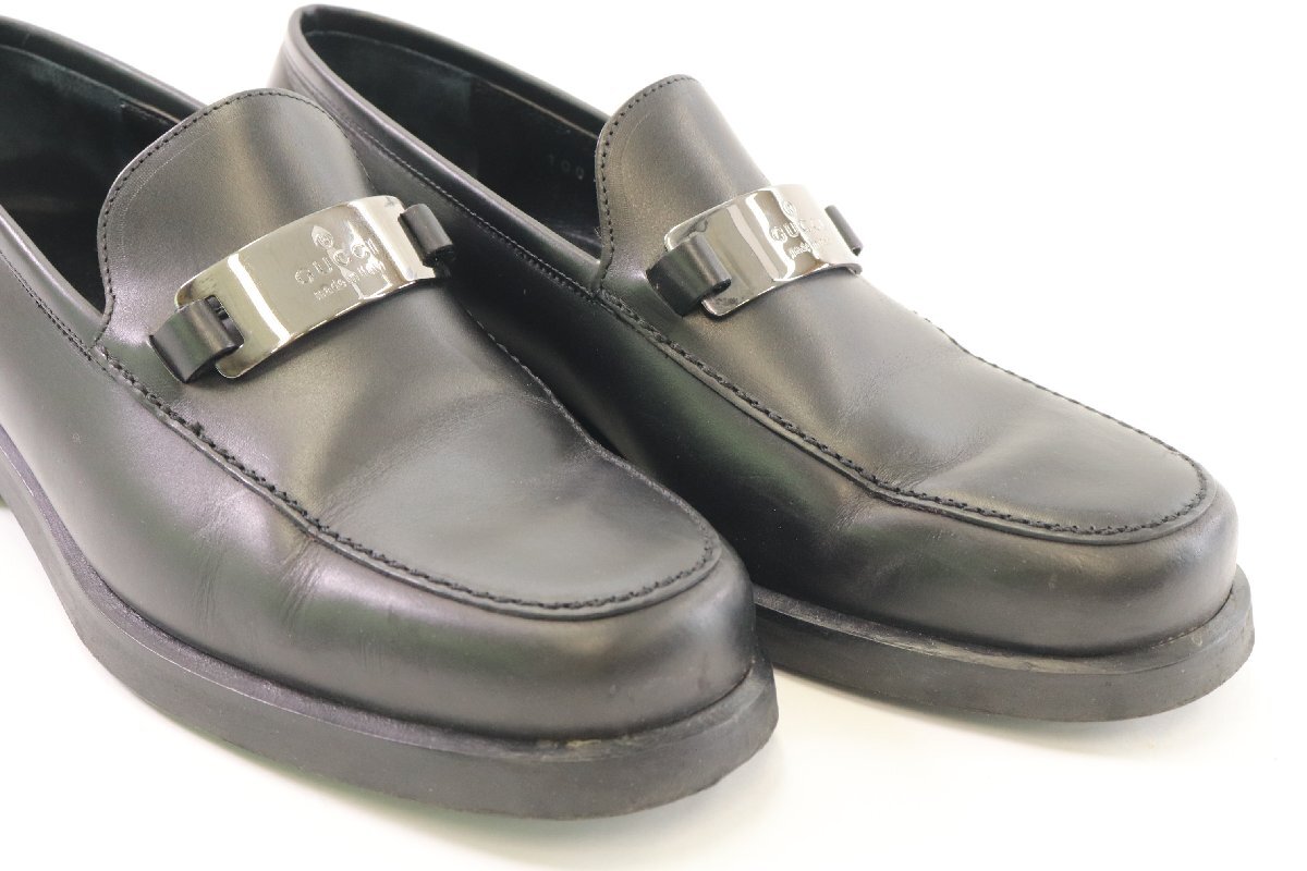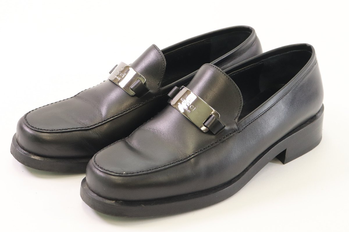 | GUCCI グッチ 100 0491 サイズ 37 ブラック シルバー金具 レザー ローファ シューズ 靴 くつ 黒 レディース 5504-Y | |