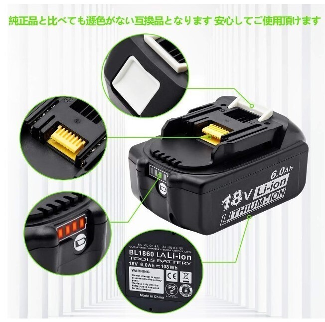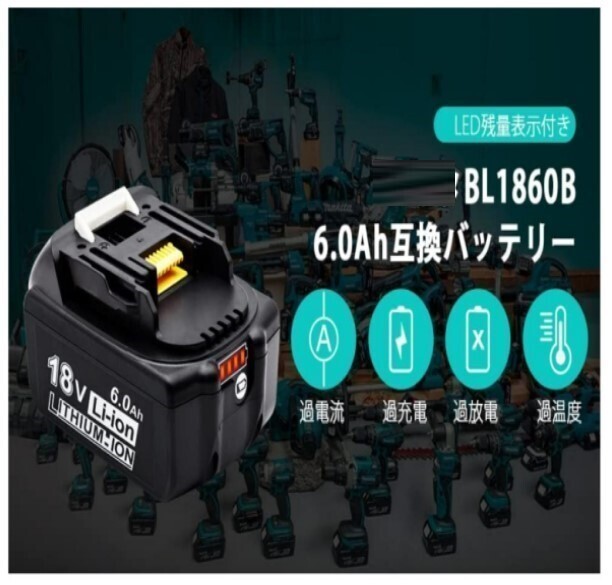 マキタ 18v BL1860輸入バッテリー 容量:6000mAh(6.0Ah) 18v輸入 バッテリー 6.0ah bl1860 BL1860 BL1830 BL1840 BL1850 BL1830b BL1840b BL1850b BL1860b 対応