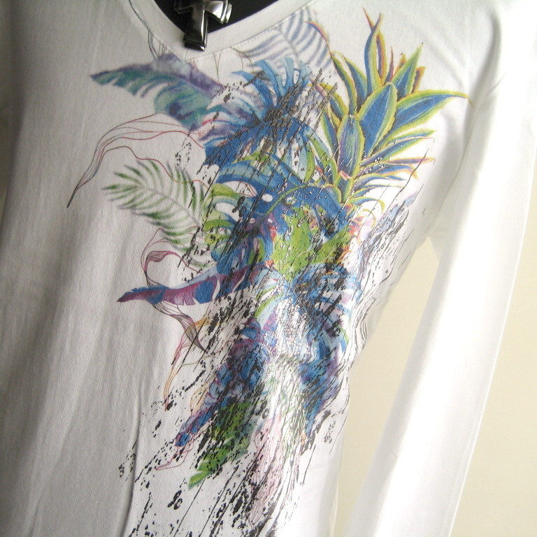 1.6万 新品 L トルネードマート ネオンジャングルプリントTシャツ長袖 ホワイト 送料無料 サンプル 665