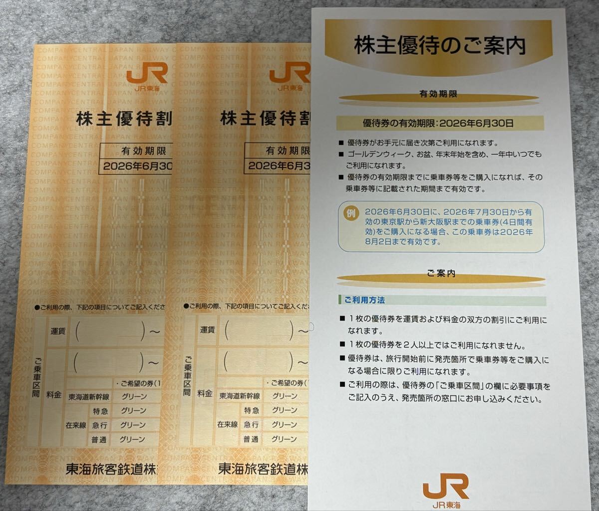 JR東海 株主優待 2枚セット 2026/6/30 期限です。