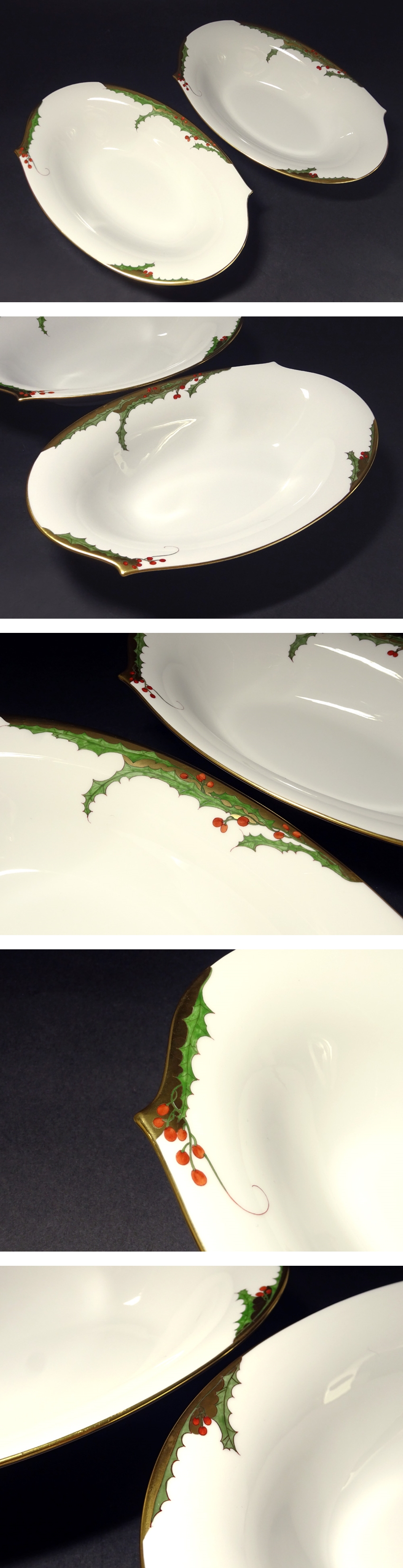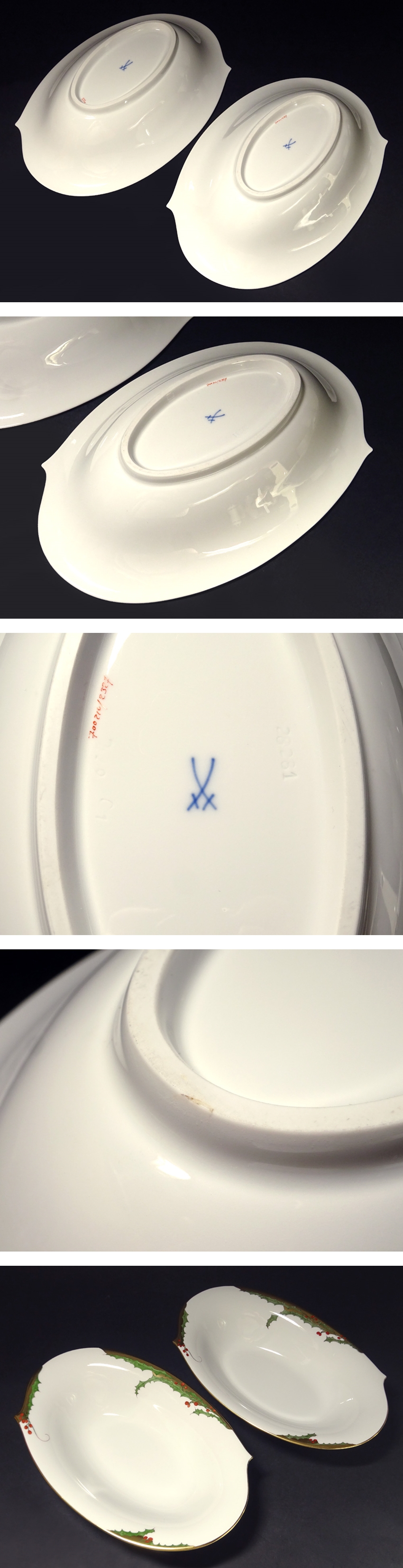 慶應◆【MEISSEN マイセン】クリスマス(ノエル)『Waves Pure Holly ホーリー(波の戯れピュア)』オーバルボウルペア