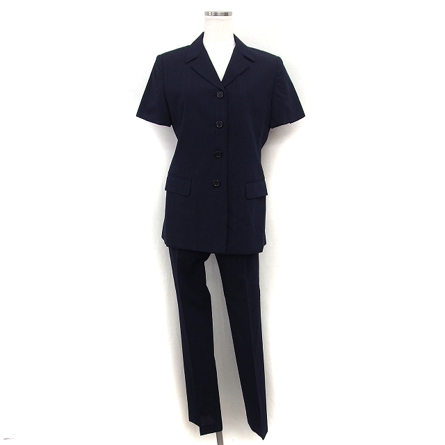 【実寸サイズ】ジャケット 肩幅:約37.5cm ジャケット 身幅:約44cm ジャケット 袖丈:約20.5cm ジャケット 着丈:約66cm パンツ ウエスト:約64cm パンツ もも幅:約27cm パンツ 裾幅:約20cm パンツ 股上:約30cm パンツ 股下:約75cm スカート ウエスト約62cm ヒップ約80cm スカート丈約49.5cm