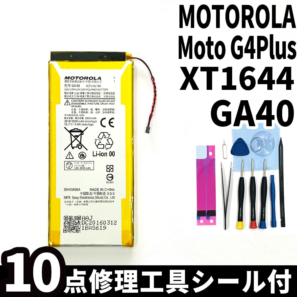 ★MOTOROLA Moto G4 Plus バッテリー交換 XT1644 GA40 電池パック交換キット battery repair 電池交換専用両面テープ 修理工具付セット★