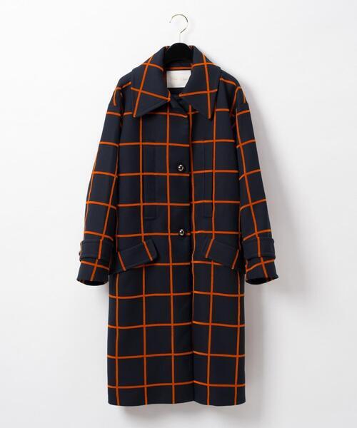 キーワード:ステンカラーコート コート レディース チェック ロング丈 秋 冬