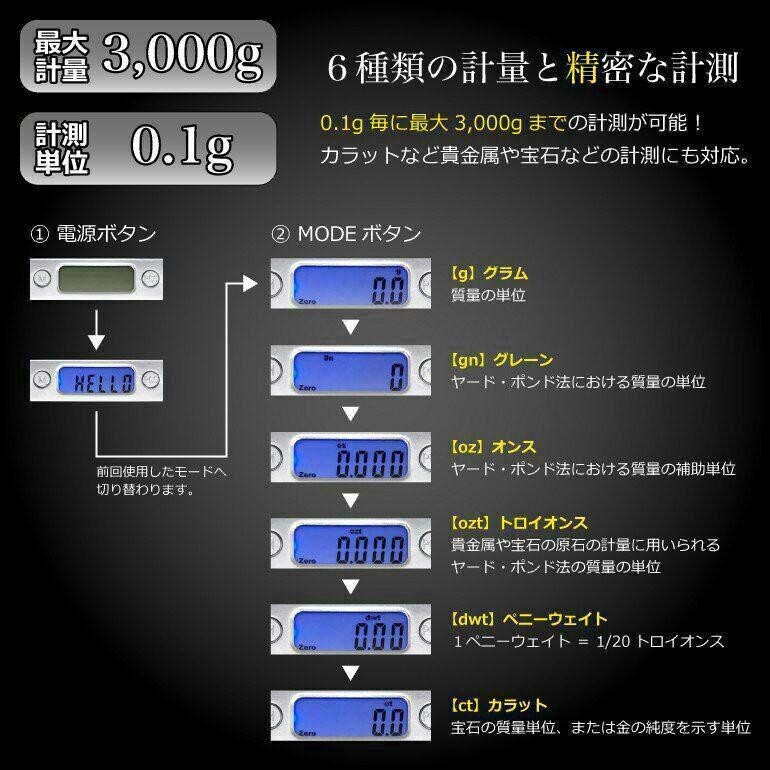 最大3001g 0.1g単位で計れる デジタル スケール です。