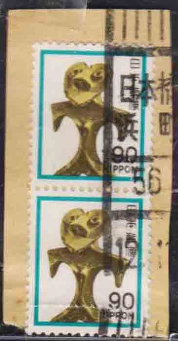| (888)日本切手・オンぴス90円はにわペアー済み・日本橋・浜町56年12月 |