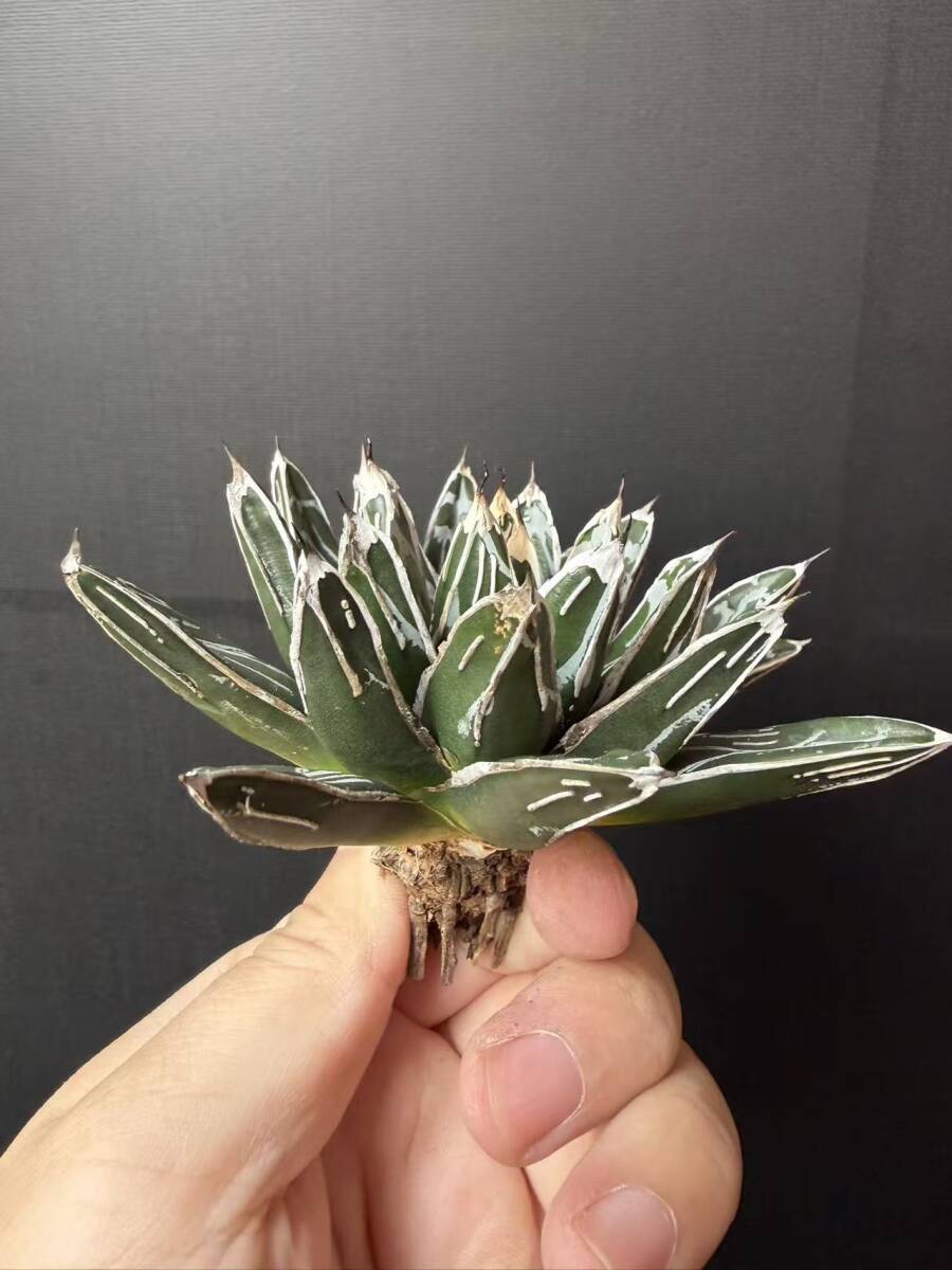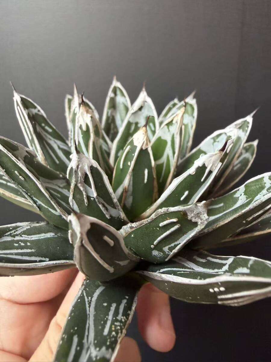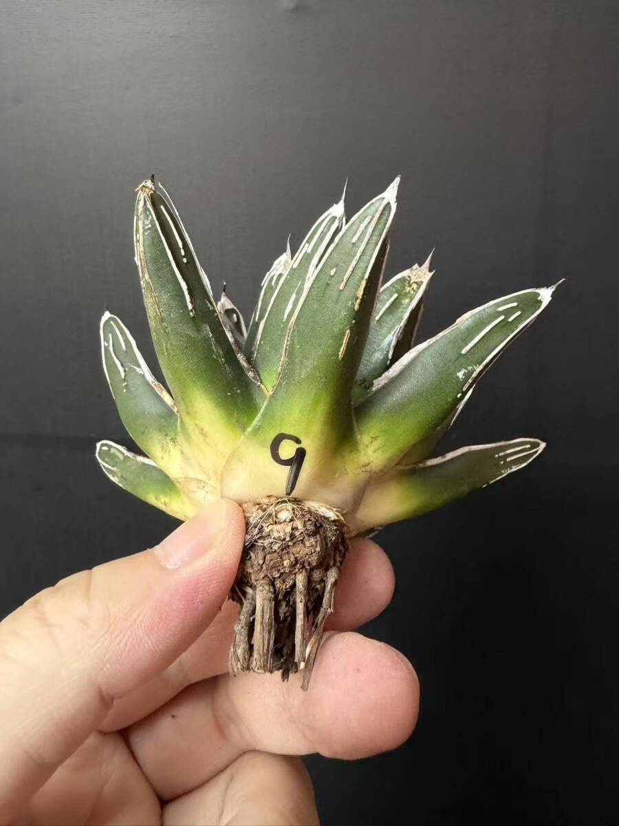 C-9多肉植物 アガベ 姫笹の雪 濃ペンキ 矮性 Agave victoreae-reginae 'Hime Sasanoyuki' 極上株