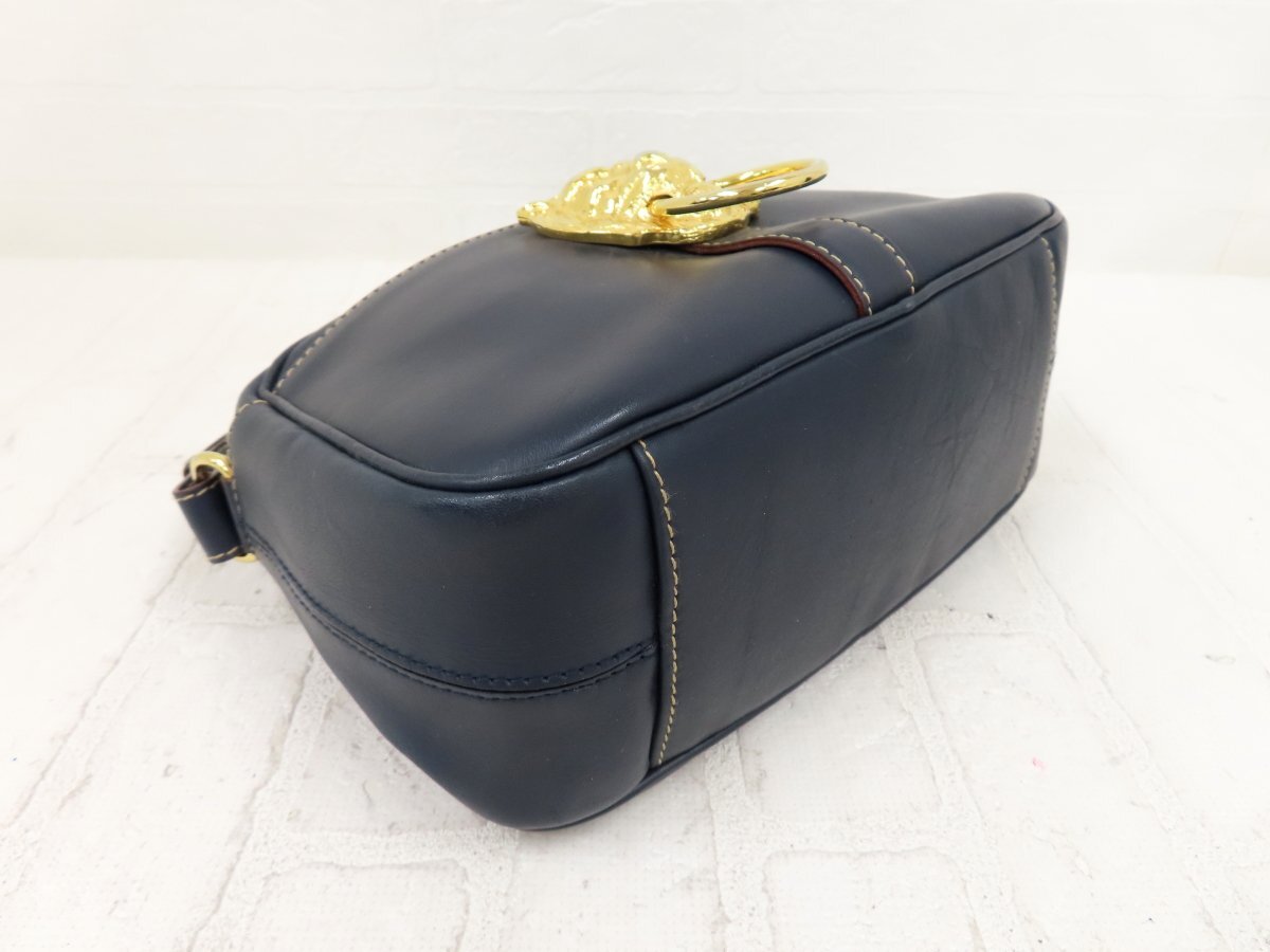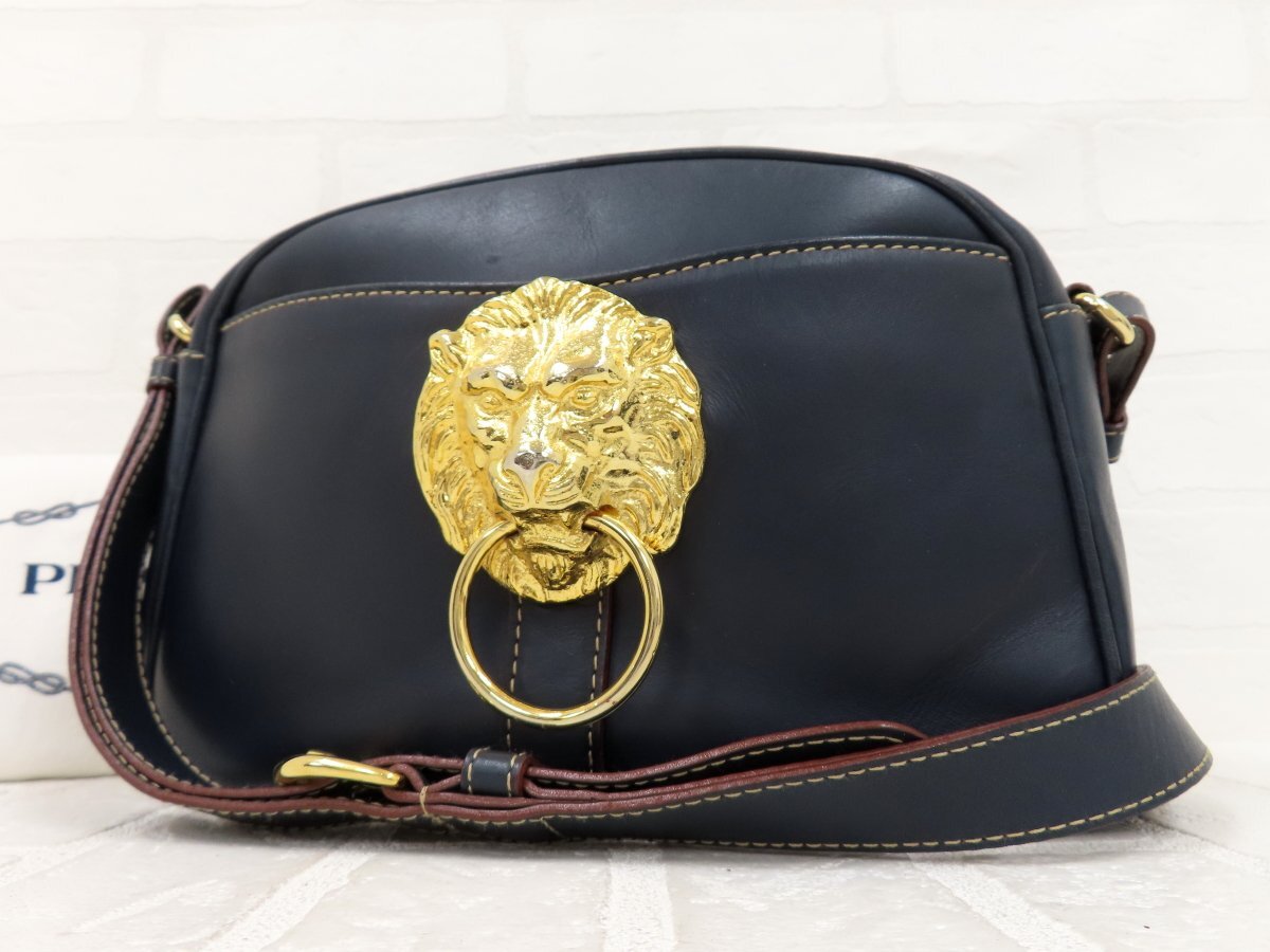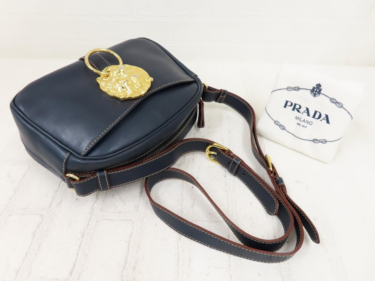 ◆美品◆PRADA プラダ◆カーフ レザー 本革◆ショルダー バッグ◆ネイビー G金具◆イタリア製◆ヴィンテージ◆ライオンヘッド◆A14658