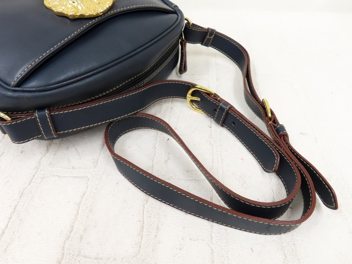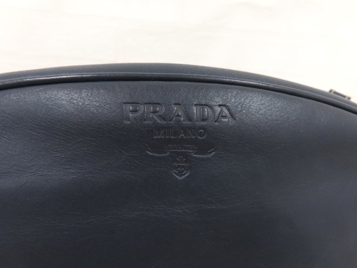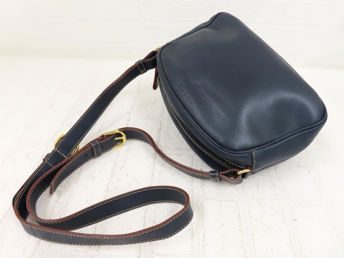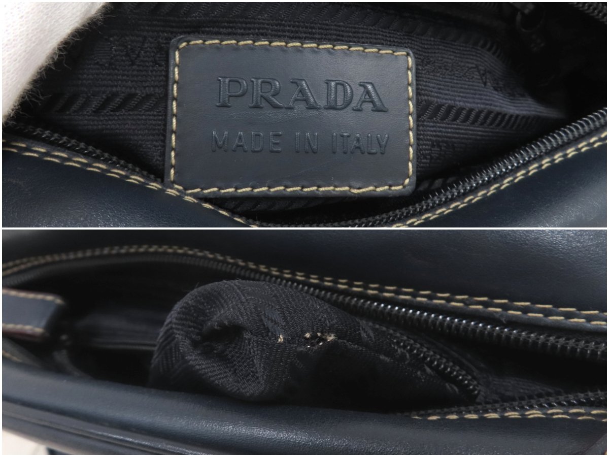 ◆美品◆PRADA プラダ◆カーフ レザー 本革◆ショルダー バッグ◆ネイビー G金具◆イタリア製◆ヴィンテージ◆ライオンヘッド◆A14658