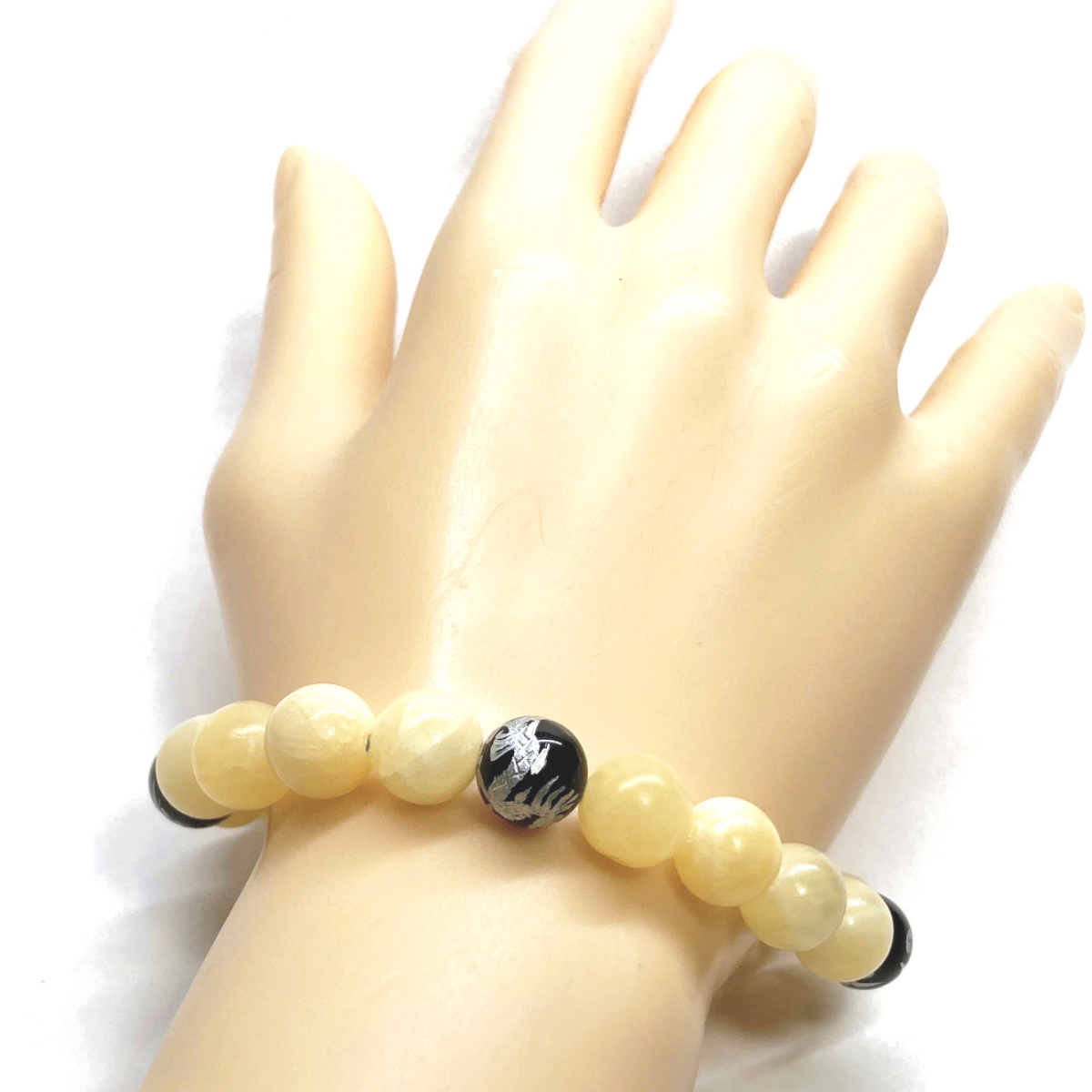 10mm 四神獣銀彫オニキス×アラゴナイト パワーストーン ブレスレット天然石 運気上昇 開運 金運 恋愛 青龍 白虎 玄武 朱雀 ☆