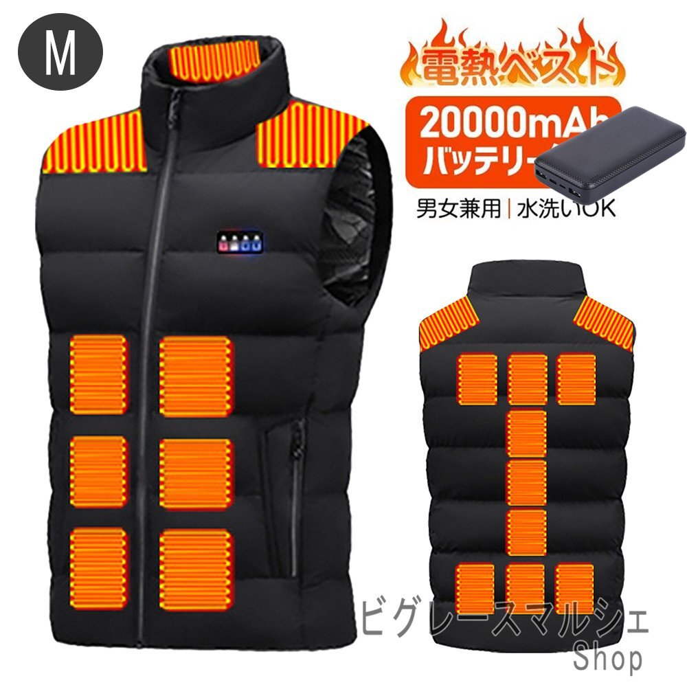 電熱ベスト バッテリー付き 20000mAh 21箇所発熱 ヒーターベスト 電熱ジャケット ベスト 中綿 3段階調温 速暖 洗える 電熱ウェア hw1387.M