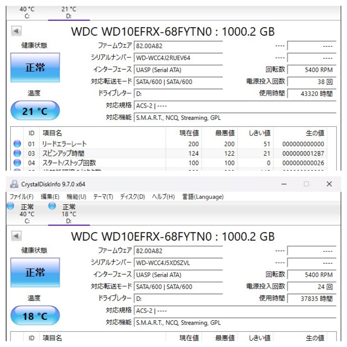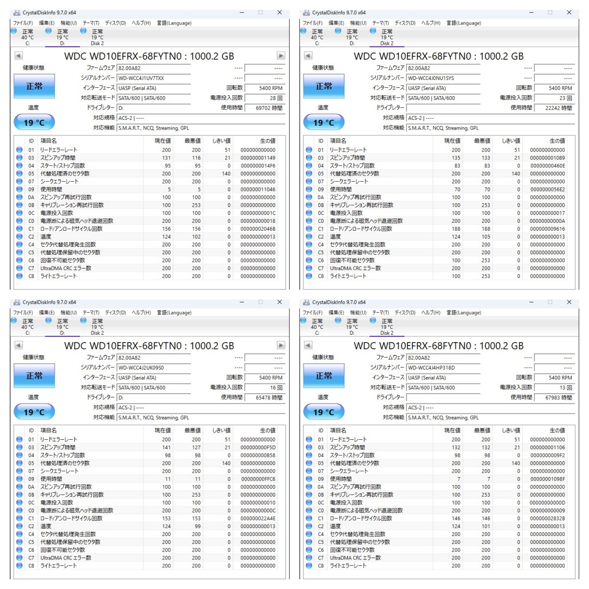 【10台セット】WDハードディスクHDD 1TB 10個セットまとめ売りWD10EFRX 10台 健康状態 正常 12-14-A10