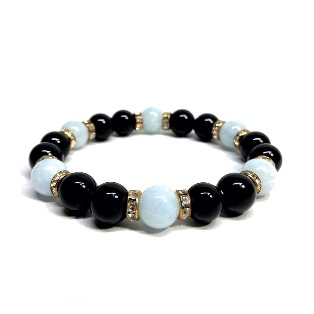 こちらは、モリオンとアクアマリンを組み合わせたパワーストーンブレスレットです。間にはロンデルを挟み高級感あるデザインに仕上げております。石大きさは腕にも馴染みやすいように10mm玉で内径約18cm(伸可能)です。(サイズ変更の場合は取引ナビにてご連絡をお願いします。) 数に限りがございますので気になる方はお早めにどうぞ。