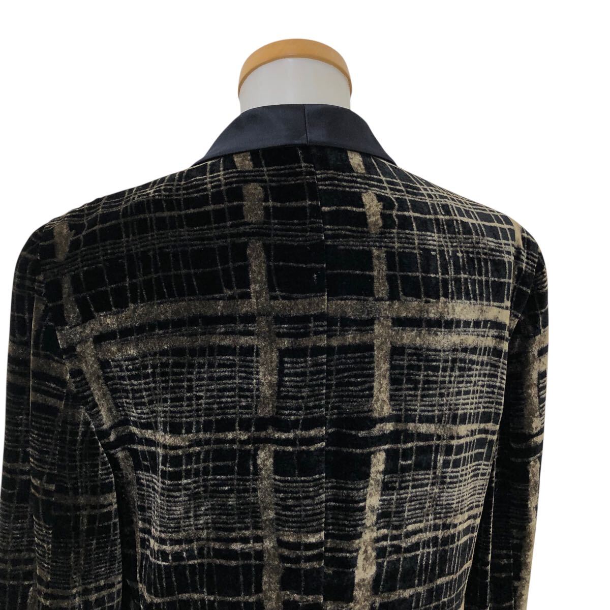 12Nm350-9 イタリア製 GIORGIO ARMANI ジョルジオ アルマーニ シルク混 チェック 柄 ベロア ショールカラー ジャケット 上着 羽織り ブラック系 42