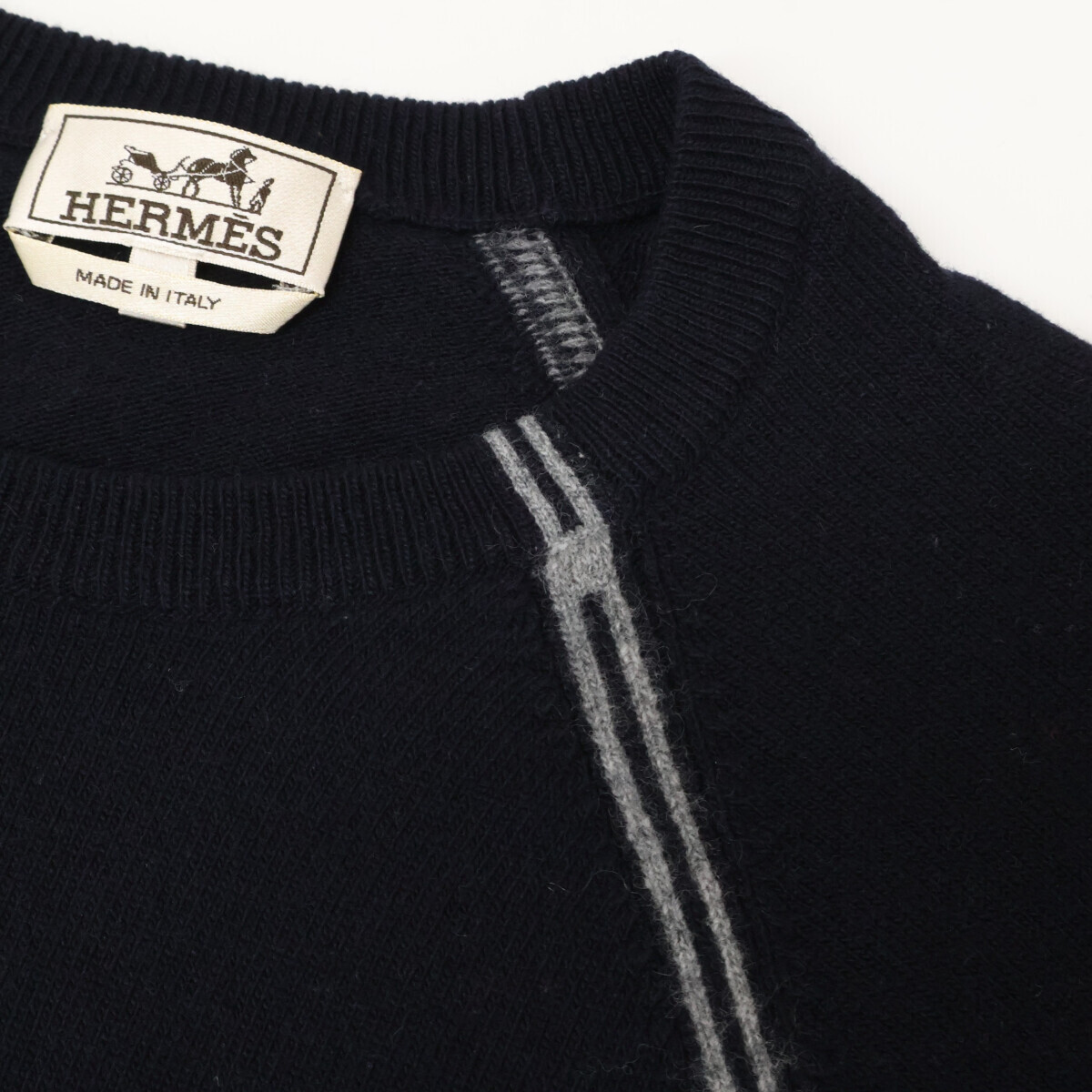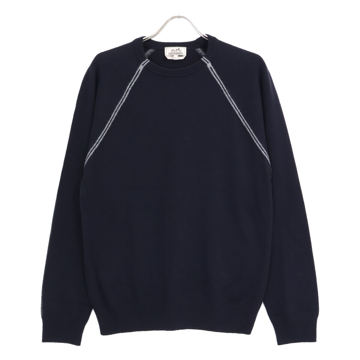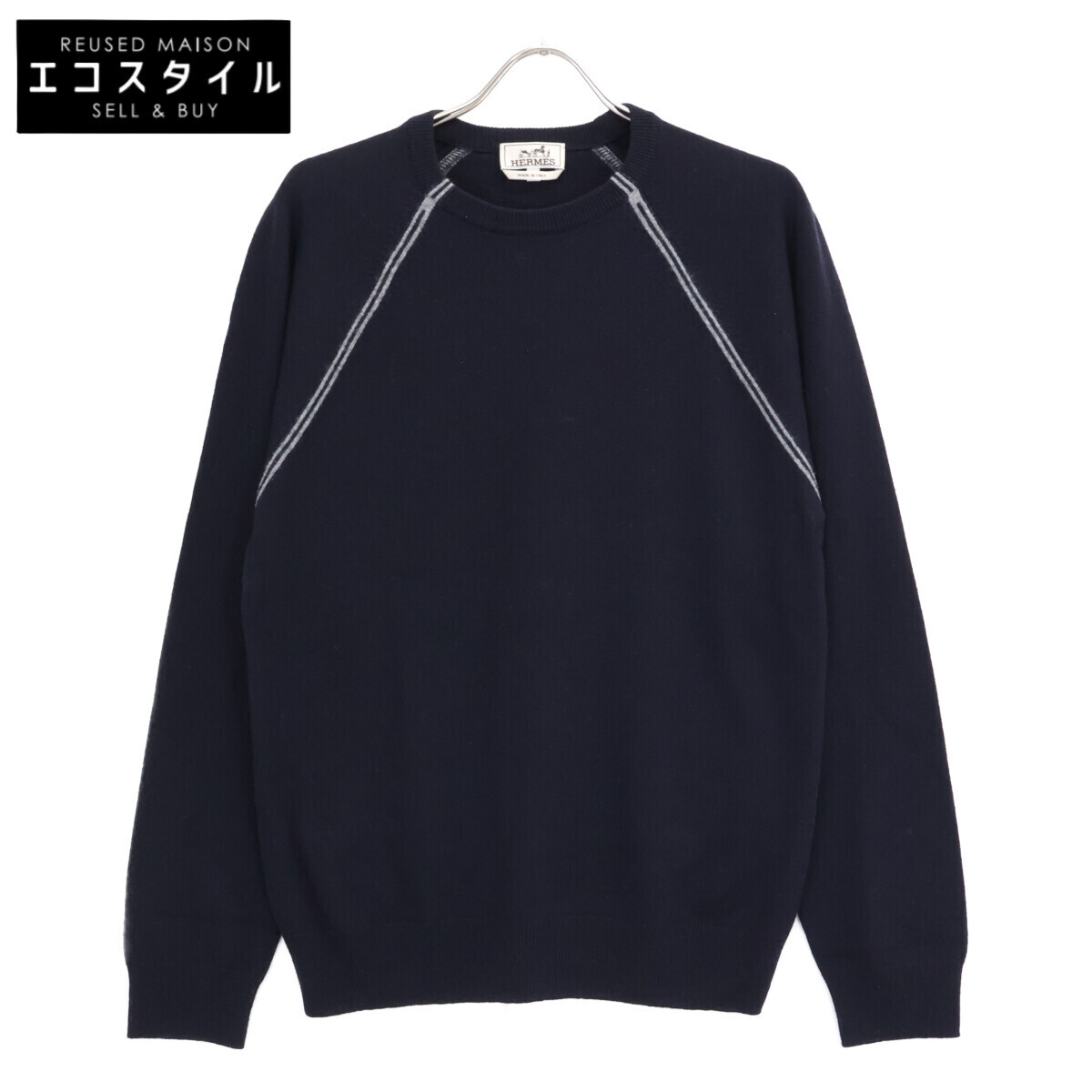 美品/ HERMES エルメス ウールxカシミヤ クルーネック ニットセーター/ トップス L ネイビー メンズ