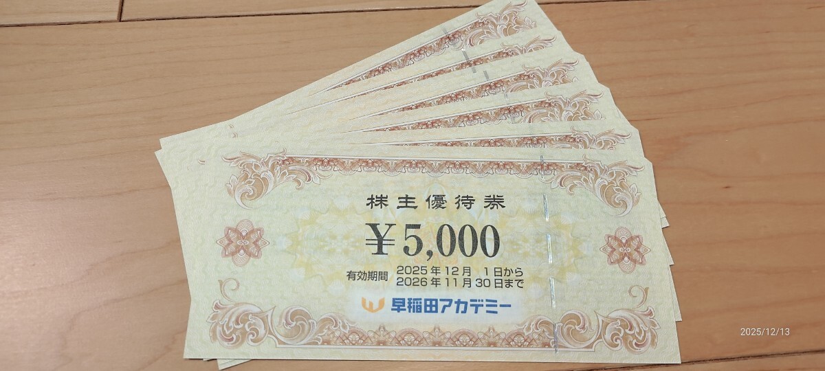 ◆早稲田アカデミーの株主優待券 5万円分(5000円×10枚)です。