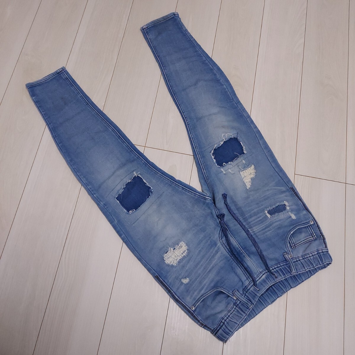 AZUL by moussy アズール バイ マウジー 2519AW81-3283 / メンズ / インディゴ リペア加工 ストレッチ ニットドビーデニム パンツ size XS