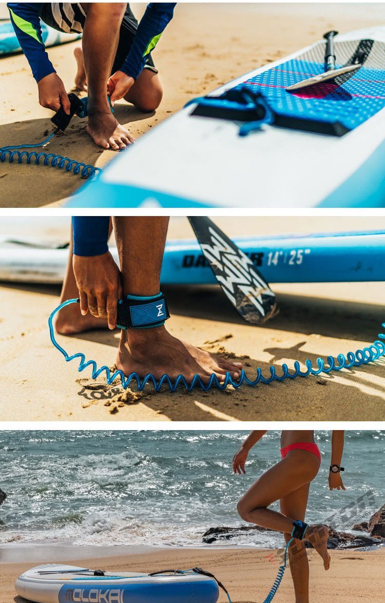 【商品SPEC】■長さ:約10'(304cm)●SUP用のコイルリーシュコードです。●足首に取り付ける部分はネオプレン素材で肌触りが快適に。●コードとバンドの接続部は360度回転するアダプターを使用し、コードが絡まりにくい仕様になっています。●コイル状のコードなので絡みづらく、コードが邪魔になりません。●取り付けは全て頑丈なマジックテープで、使用中は外れにくく、取り外しは簡単な仕様です。