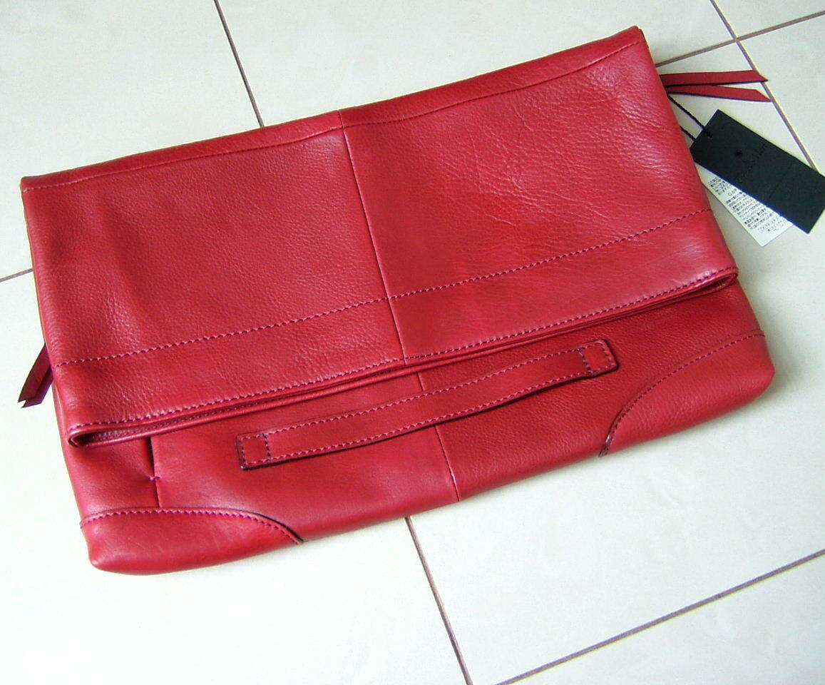 新品 トルネードマート 牛本革レザー 赤レッド クラッチバッグ TORNADOMART