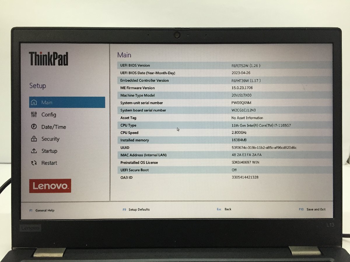 ジャンク/ LENOVO 20VJS17X00 ThinkPad L13 Gen 2 Intel Core i7-1165G7 メモリ16.38GB NVME512.11GB 【K25507】