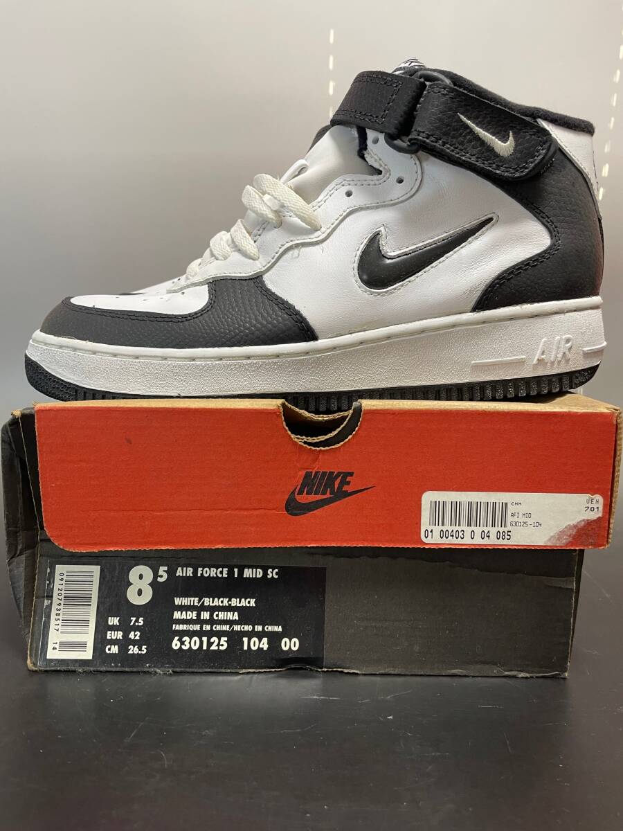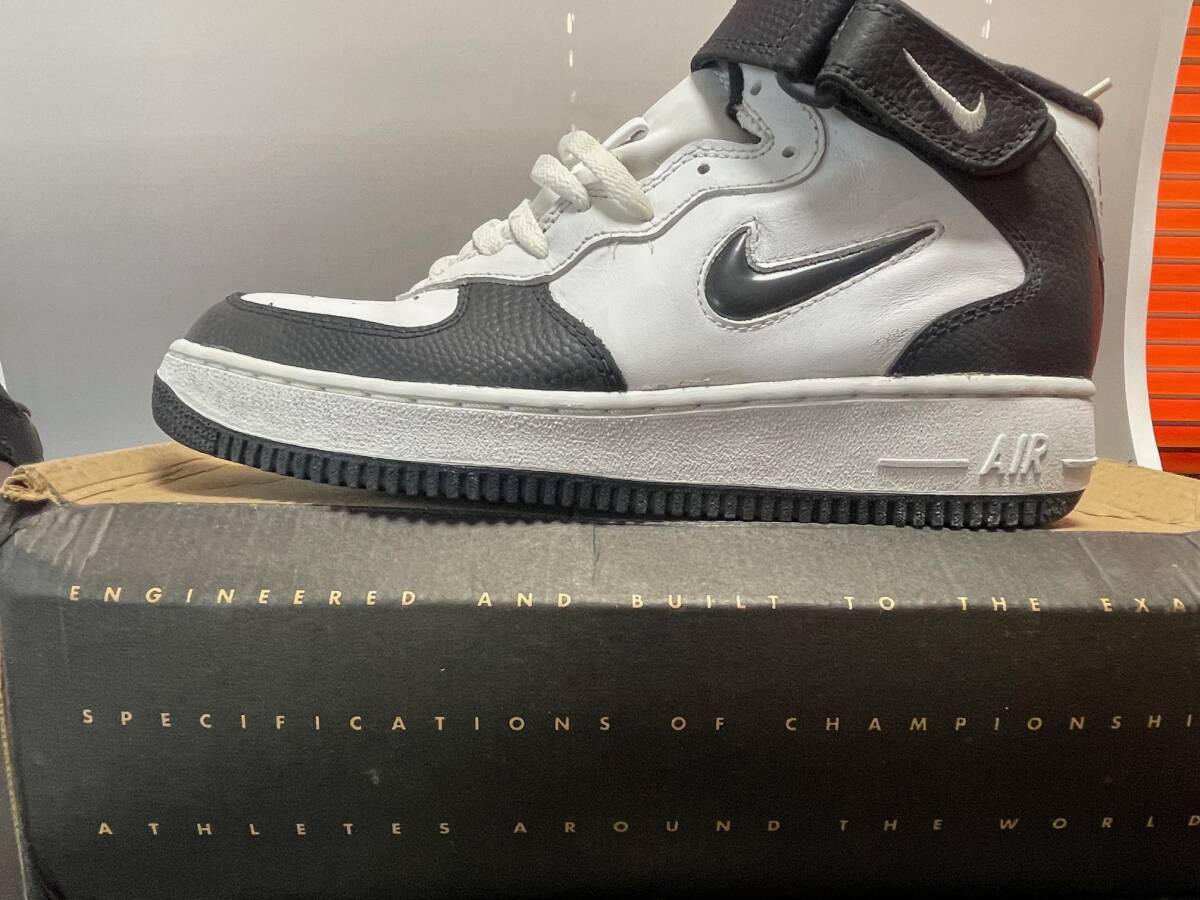 1996年製 未使用 日本未発売 デットストック 当時物 90s nike エアフォース1 MID SC レザー 白x黒 US8ハーフ 日本サイズ26.5cm ナイキ
