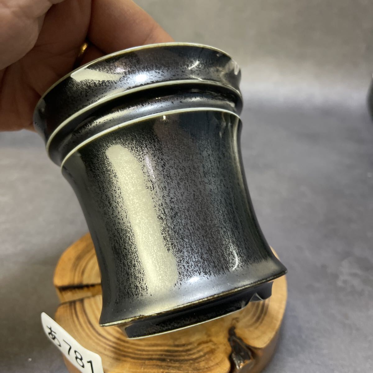 深い黒釉の中に、細かな銀砂が静かに瞬く「黒曜星塵」モデル。