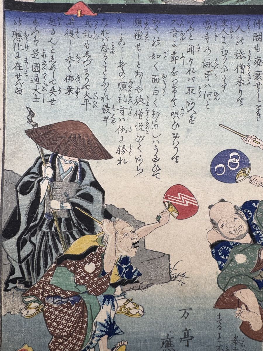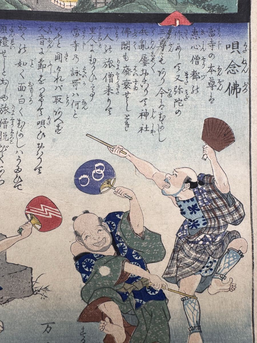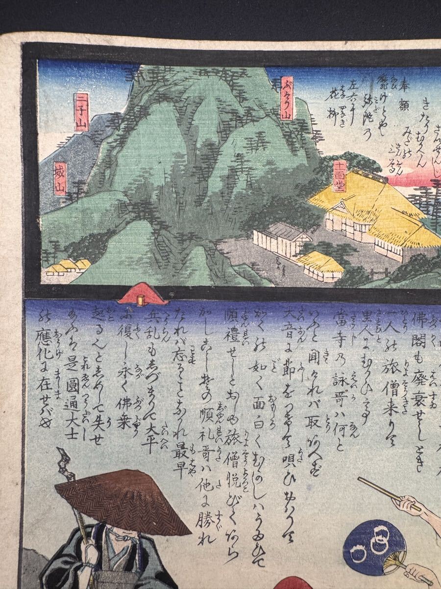【真作】本物浮世絵木版画 三代歌川豊国/二代歌川広重「観音霊験記 秩父順礼 唄念佛」江戸期 名所絵 大判 錦絵 保存良い 裏打ち