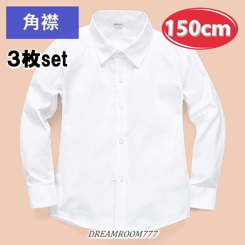お得な3枚set★綿100% 角襟 ブラウス【150cm】ワイシャツ 白シャツ 学生服 フォーマル 冠婚葬祭 制服