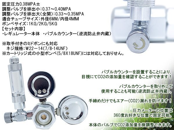 【送料無料】大型ボンベ用 CO2 レギュレーター カウンター 逆流防止弁 バブルカウンター ミドボン用 レギュレーター 熱帯魚 淡水魚 水草