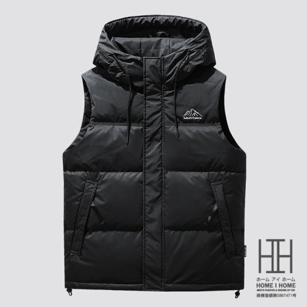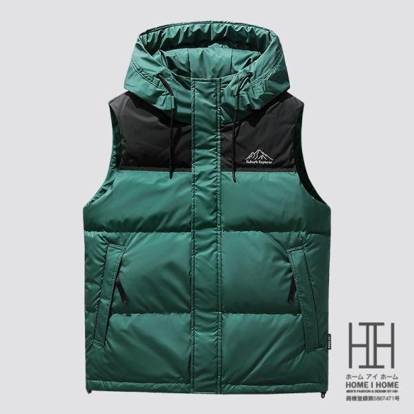 ダウンベスト メンズ 大きい フード付き 切り替え 配色 刺繍入り ワンポイント 防風 防寒 おしゃれ 作業 暖かい 保温 アウトドア ワークマン ダウンジャケット 秋 冬