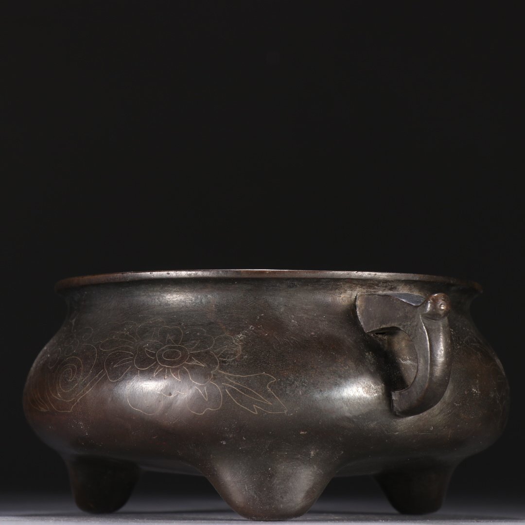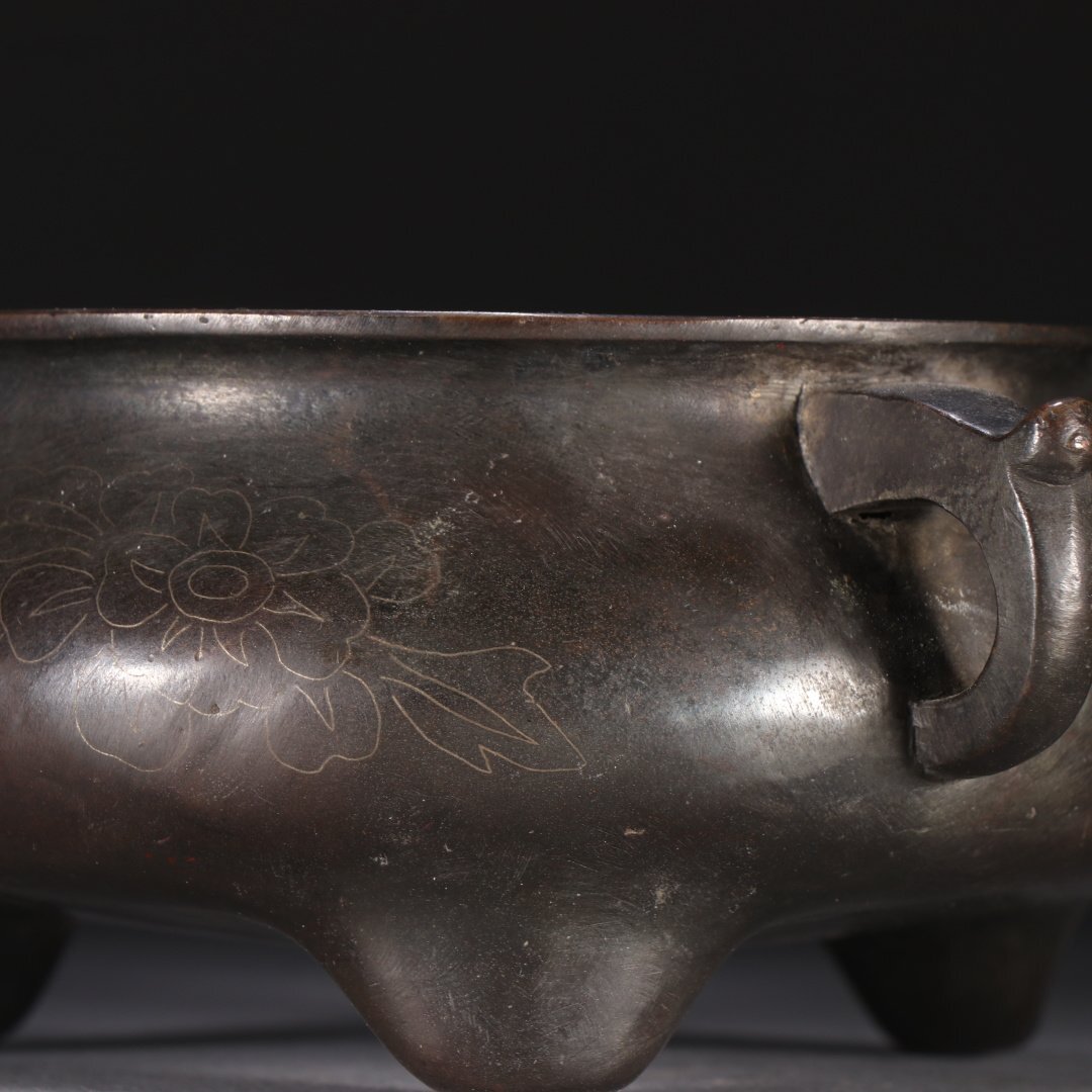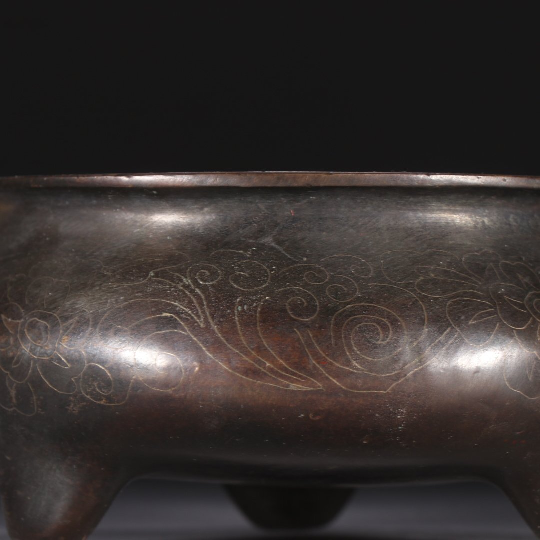 【安】明時代 大明成化年製 銅胎 錯銀絲 花紋香炉 極細工 古置物 古擺件 中国古美術 時代物 古董品 337 サイズ(約寸) |