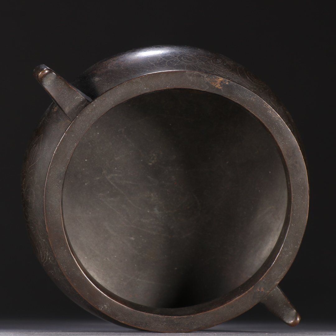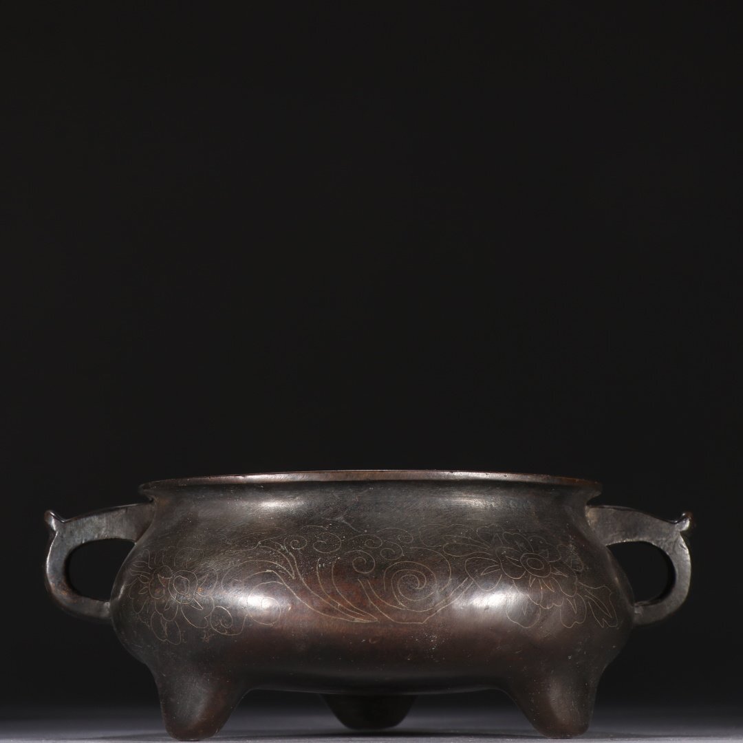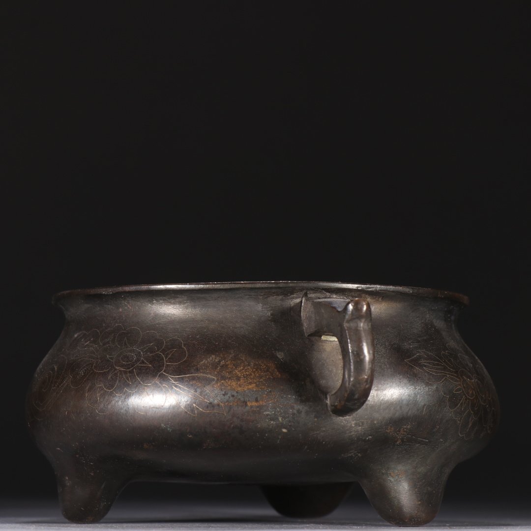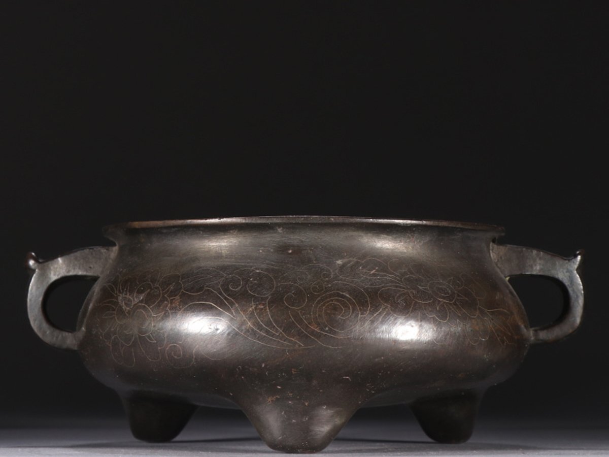 【安】明時代 大明成化年製 銅胎 錯銀絲 花紋香炉 極細工 古置物 古擺件 中国古美術 時代物 古董品 337 サイズ(約寸) |