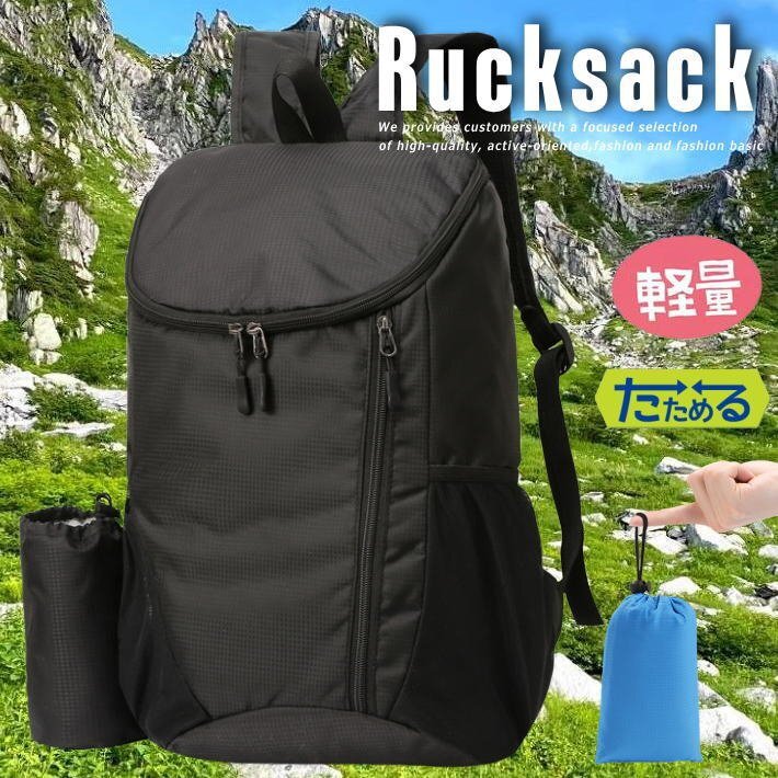 折りたたみ 防災リュック リュックサック バックパック アウトドア キャンプ 撥水 軽量 パッカブル 7987035 ブラック 新品 1円 スタート