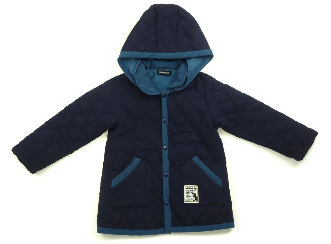 スムース素材。中綿入り。スナップボタン開き。フードの取り外しが可能です。裏地はフリース素材。袖口が汚れています。毛羽立ち・毛羽の付着が見られます。