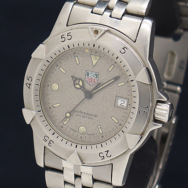 1円 稼働 良品 タグホイヤー QZ プロフェッショナル200M WD1211-K-20 シルバー文字盤 デイト メンズ腕時計 1629100 12TLT IKE