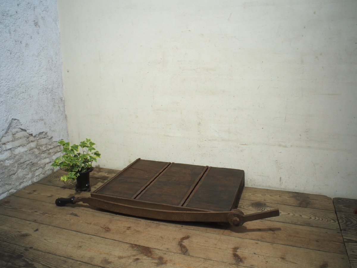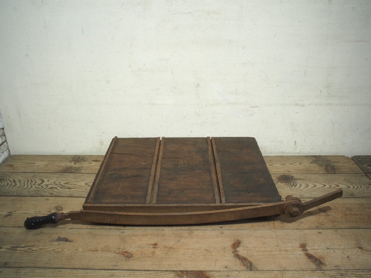 タF0370◆天板W71cm×D61cm◆珍品◆ビンテージ◆重厚な欅のトタンカッター◆工業系 切断機 建築資材 リフォーム DIY オブジェ レトロK笹4