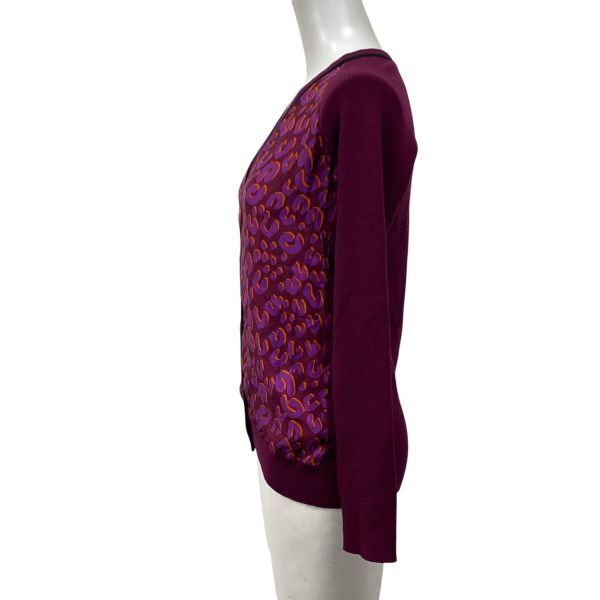 カーディガン レオパード柄 長袖 リブ トップス ヒョウ柄 総柄 Vネック ボタンゴールドカラー ニット