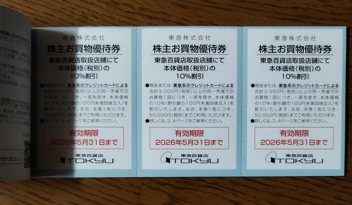 〇東急百貨店の同一売り場で、現金による合計3,000円以上につき、10%割引になるお買い物優待券10枚(券1枚につき50,000円まで 最大50,000円お得)