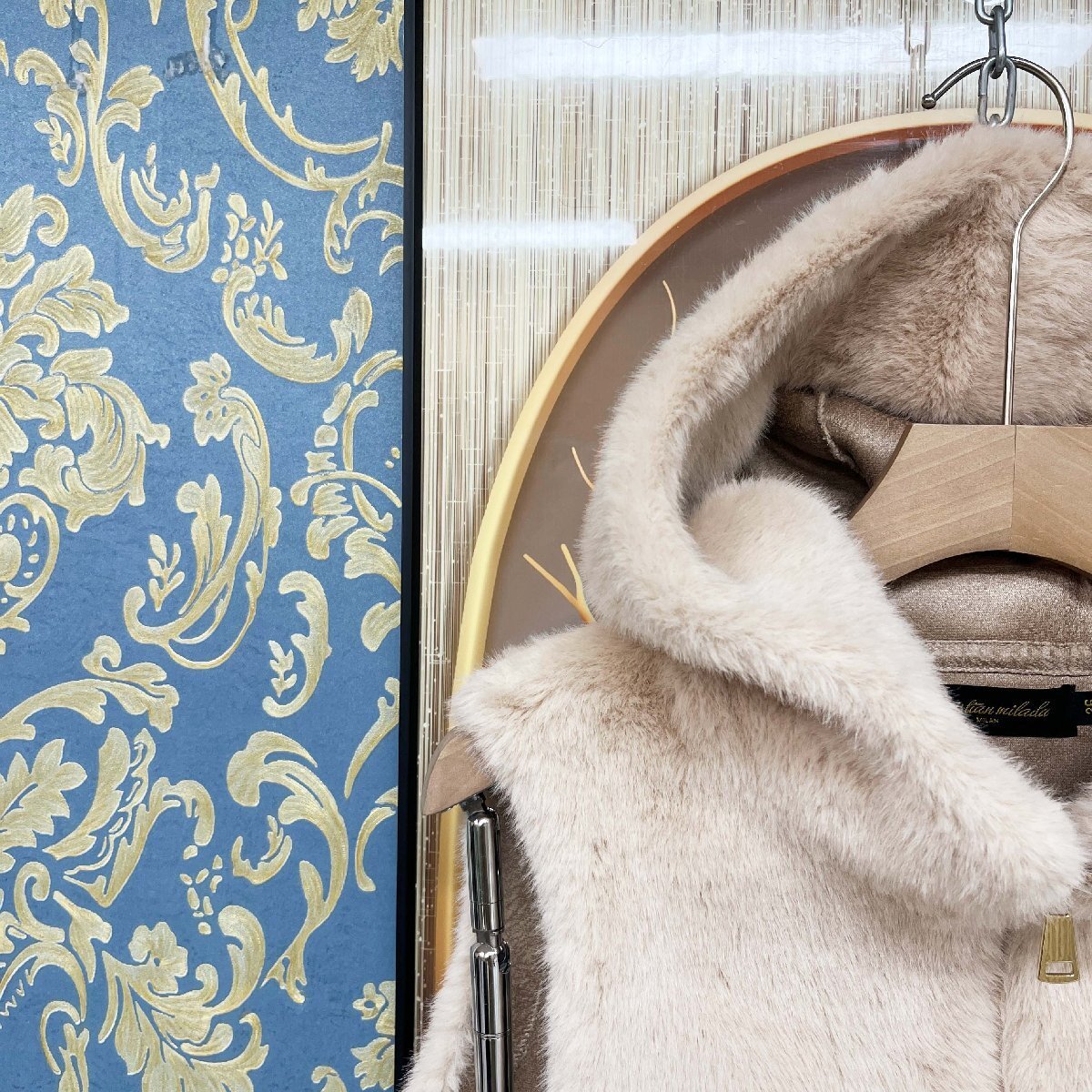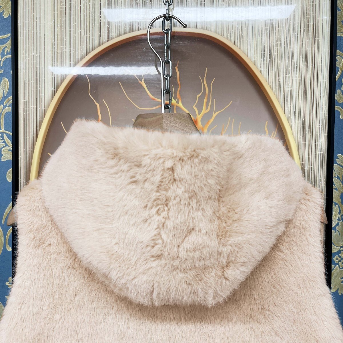 定価7万★christian milada・ミラノ発・ファーベスト★ミンク混 防寒 暖かい フード付き 無地 チョッキ 毛皮ベスト ジャケット カジュアル レディース 秋冬 S/34サイズ