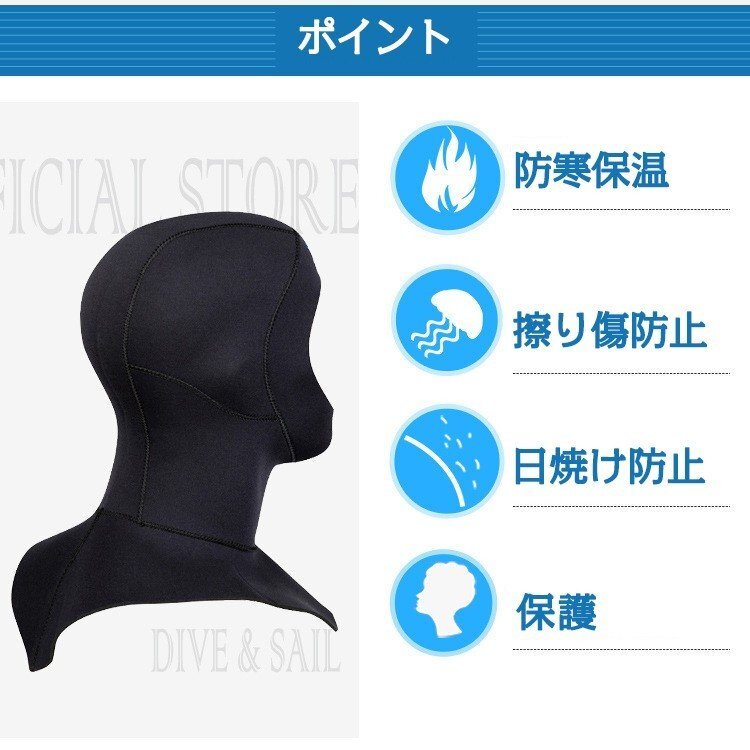 ダイビングフード 3mm ネオプレーン 男女兼用 キャップサーフィン ウェットスーツ 防寒 フード
