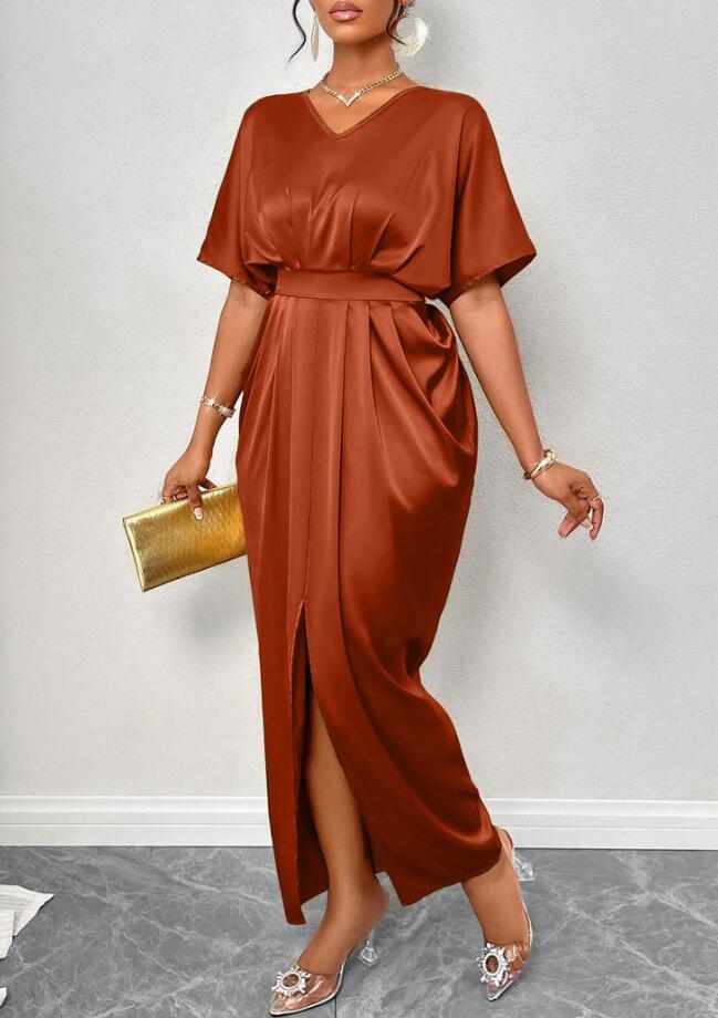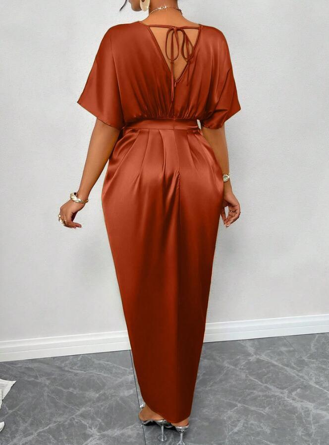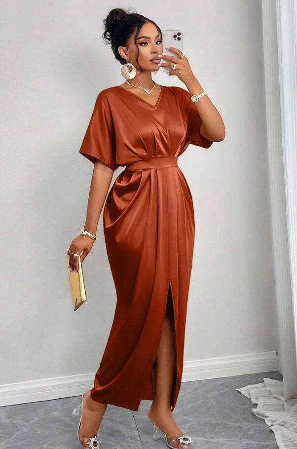 409 ワンピースladiesレディース ◇ 綺麗めシルエット ◇ ロング丈  光沢   ゆったり  ブラウン