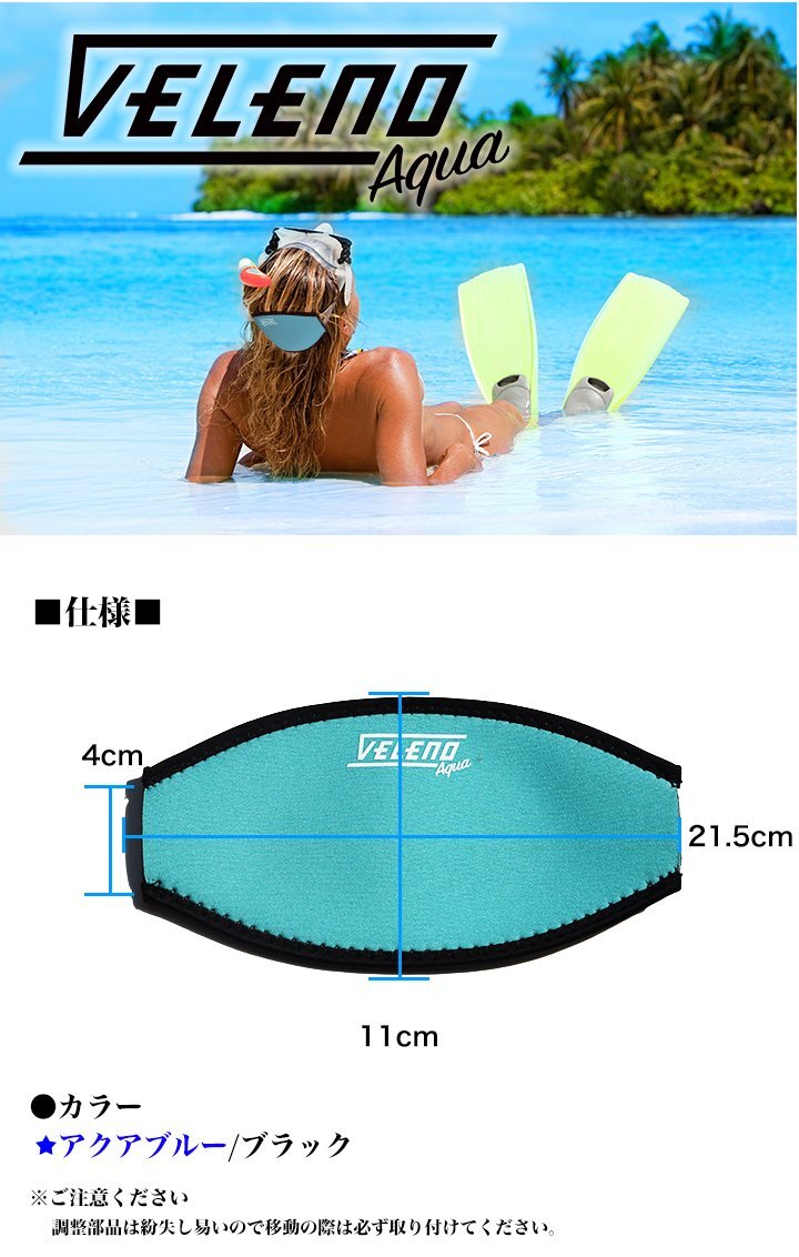 veleno aquaシュノーケル マスク ストラップカバー アクアブルー 着脱が簡単に! 髪の絡まり防止 送料無料
