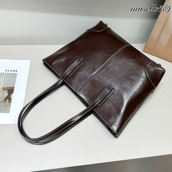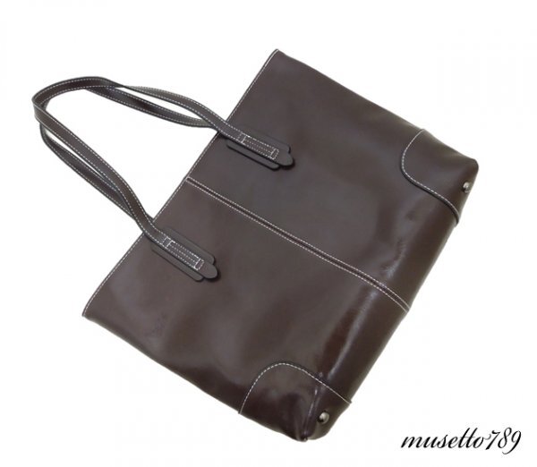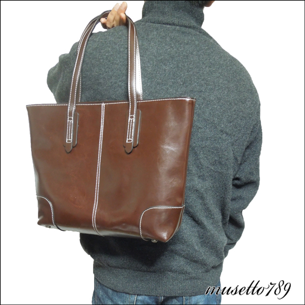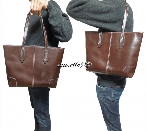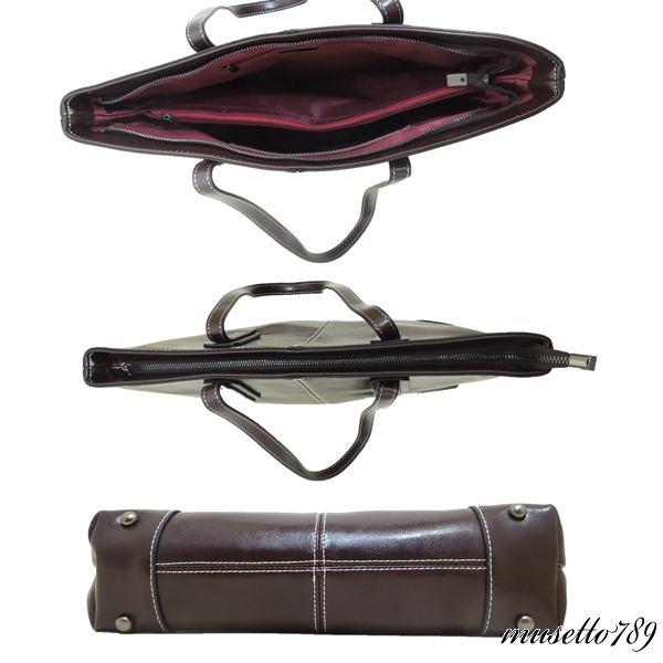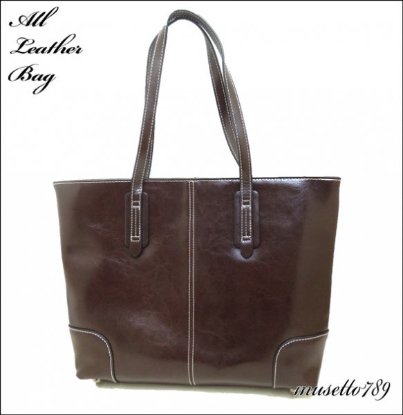 本牛革!◆全レザートートバッグ ◆A4/雑誌楽々 底鋲付 ダークブラウン 冬新作! 男女兼用 さらっとした触り心地 牛革 1円~ 焦げ茶 1064k