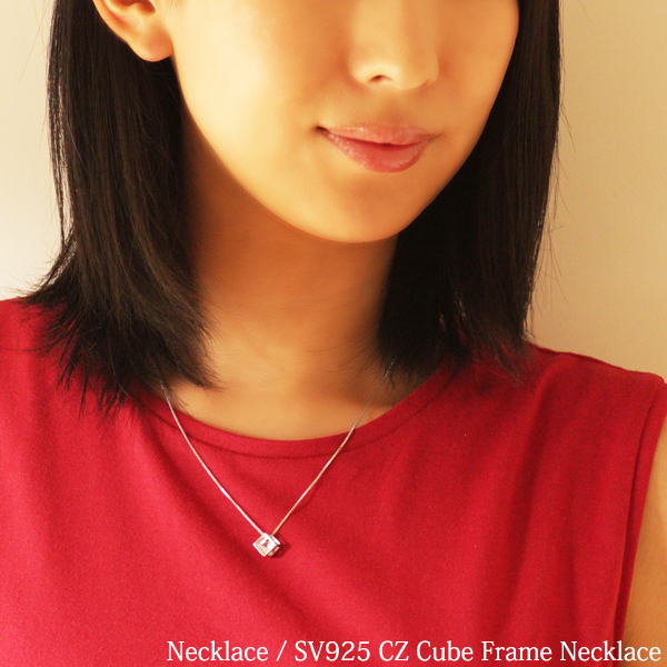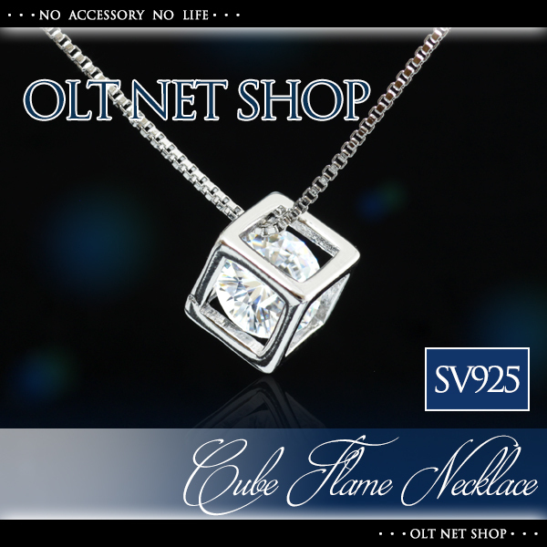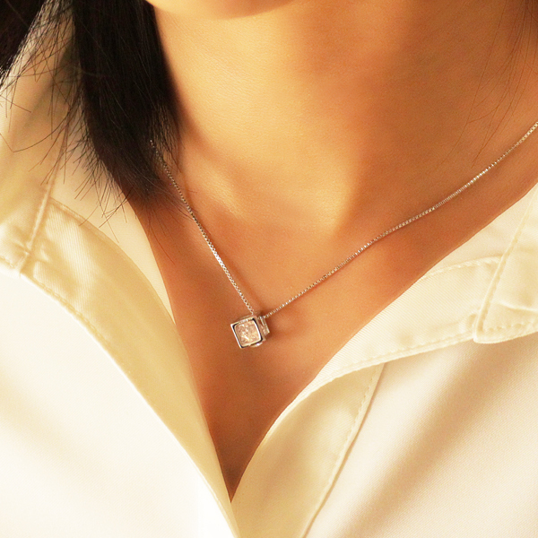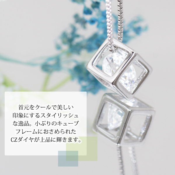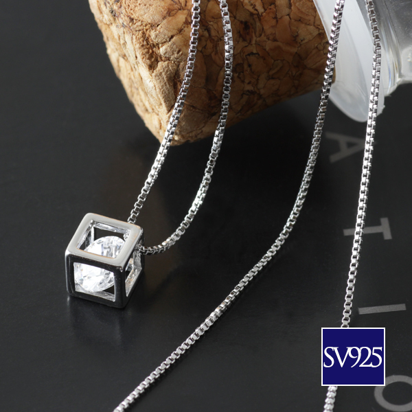 新品/ネックレス/キューブ/ダイヤ/シルバー/レディース/四角/スクエア/ベネチアン/チェーン/一粒/CZ/プラチナ仕上げ/SV925 刻印