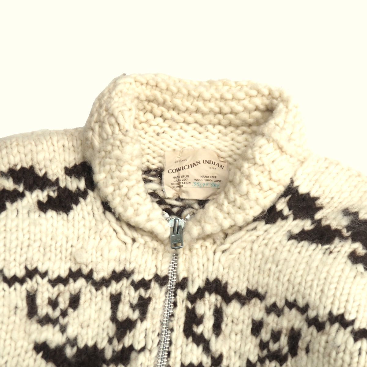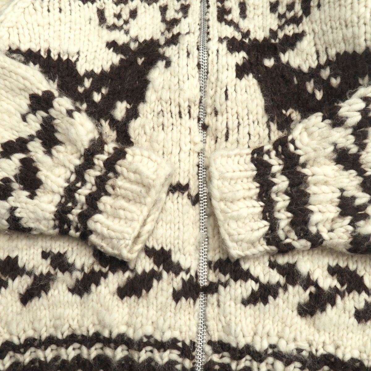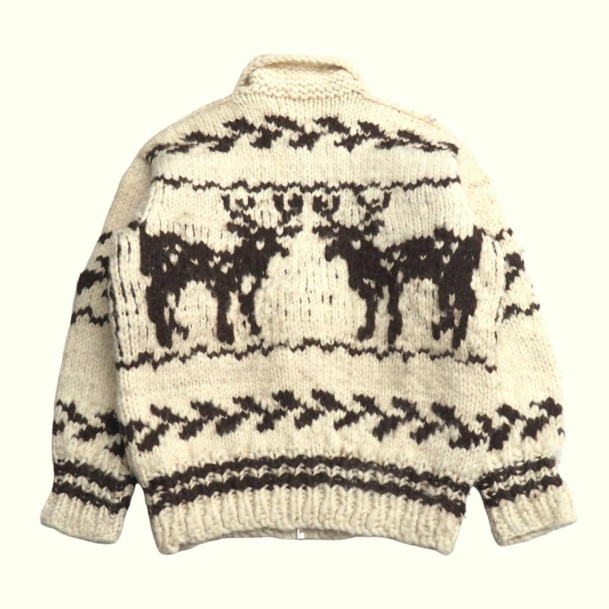| TJ8002▽COWICHAN INDIAN*メンズ*カウチンセーター*ローゲージ*ウールニット*ジップアップ カーディガン*トナカイ柄*アイボリー×ブラウン | |||