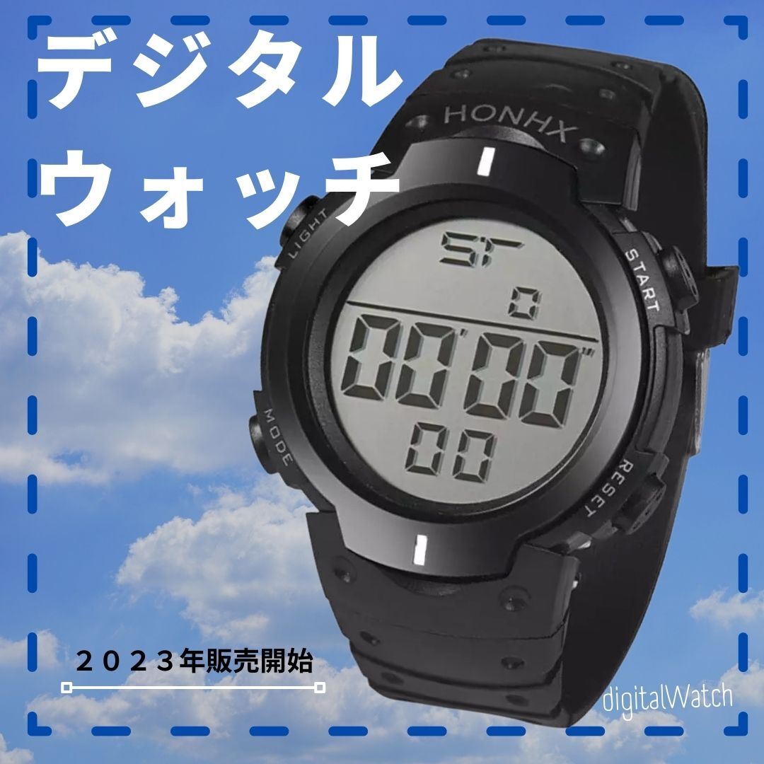 SNSでも話題!お買い得アイテム!・新品未使用・単品値下げ不可※複数購入の場合セット割引を適用しますので、コメントのほどよろしくお願いいたします!【商品説明】多機能防水腕時計30M防水スポーツウォッチ海外で大人気HONHXデジタルウォッチです。バンド穴の数も多くメンズ、レディース共にご使用いただけます。【サイズ】盤面の直径:約5cm盤面の厚さ:約1.5cmバンドの長さ:約27cmバンドの幅:約2.2cm【防水機能・耐磨耗ミラー】3気圧防水(生活防水機能、水仕事、雨、シャワーやプールなどの浅い水深なら大丈夫な防水)透明で耐久性のあるガラス樹脂ミラーで、耐摩耗性に優れておりランニングや海やプール、アウトドア、現場仕事など場面を気にせずご使用いただけます。【サイズ】盤面約55ミリ盤面厚さ約14.5ミリバンド幅約22.5ミリ【多機能】LEDバックライトで暗闇でも見やすくあらゆる場面で大活躍!ボタン操作で簡単に時刻、カレンダー合わせが出来るただけでなくアラーム設定、ストップウォッチの使用まで出来る多機能!【あらゆる場面で大活躍】バンド穴の数も多くメンズ、レディース共にご利用いただけるユニセックス腕時計!アウトドアキャンプウォーキング犬の散歩ビジネス海ジョギングマラソン釣りBBQストップウォッチ散歩ヨガトレーニングジムだけでなくカジュアルにも合う多様性のある腕時計となります。【注意事項】※送料の関係上、箱なしプチプチ梱包になります。説明書、保証書は付属していません。※海外製品のため、細かい傷などがある場合がございます(それによる返品交換はできません。)※セット販売以外の値下げ交渉はお控えいただきますようお願いいたします。