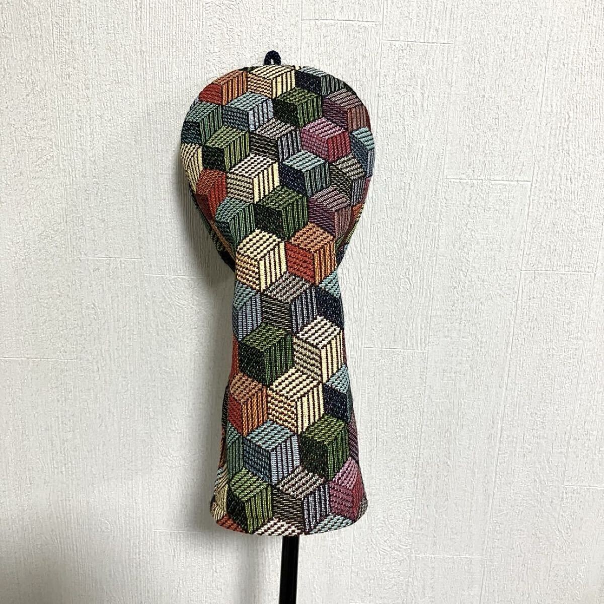 幾何学模様柄の生地でゴルフのヘッドカバーを作成しました。
